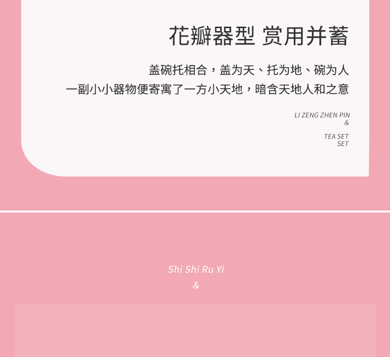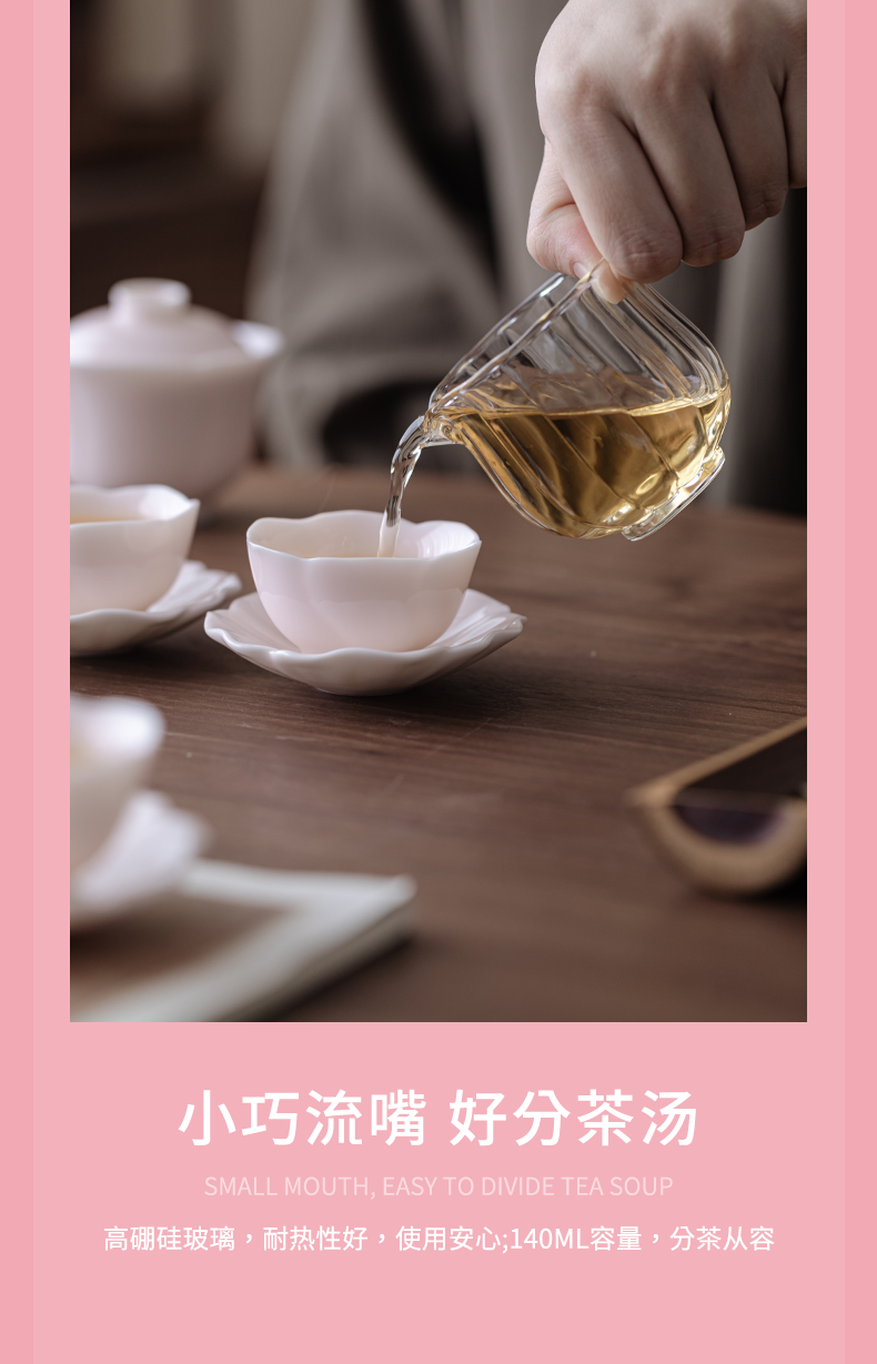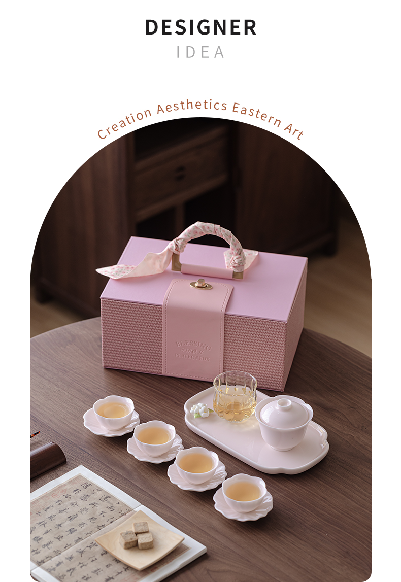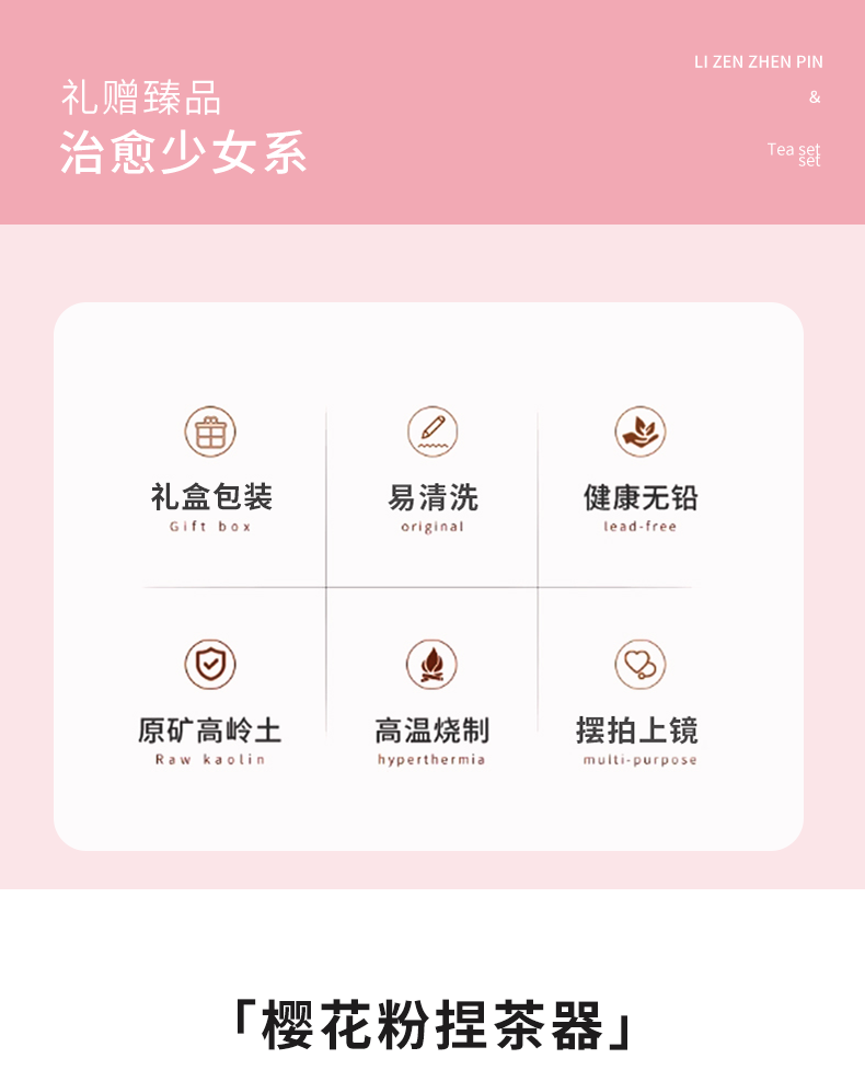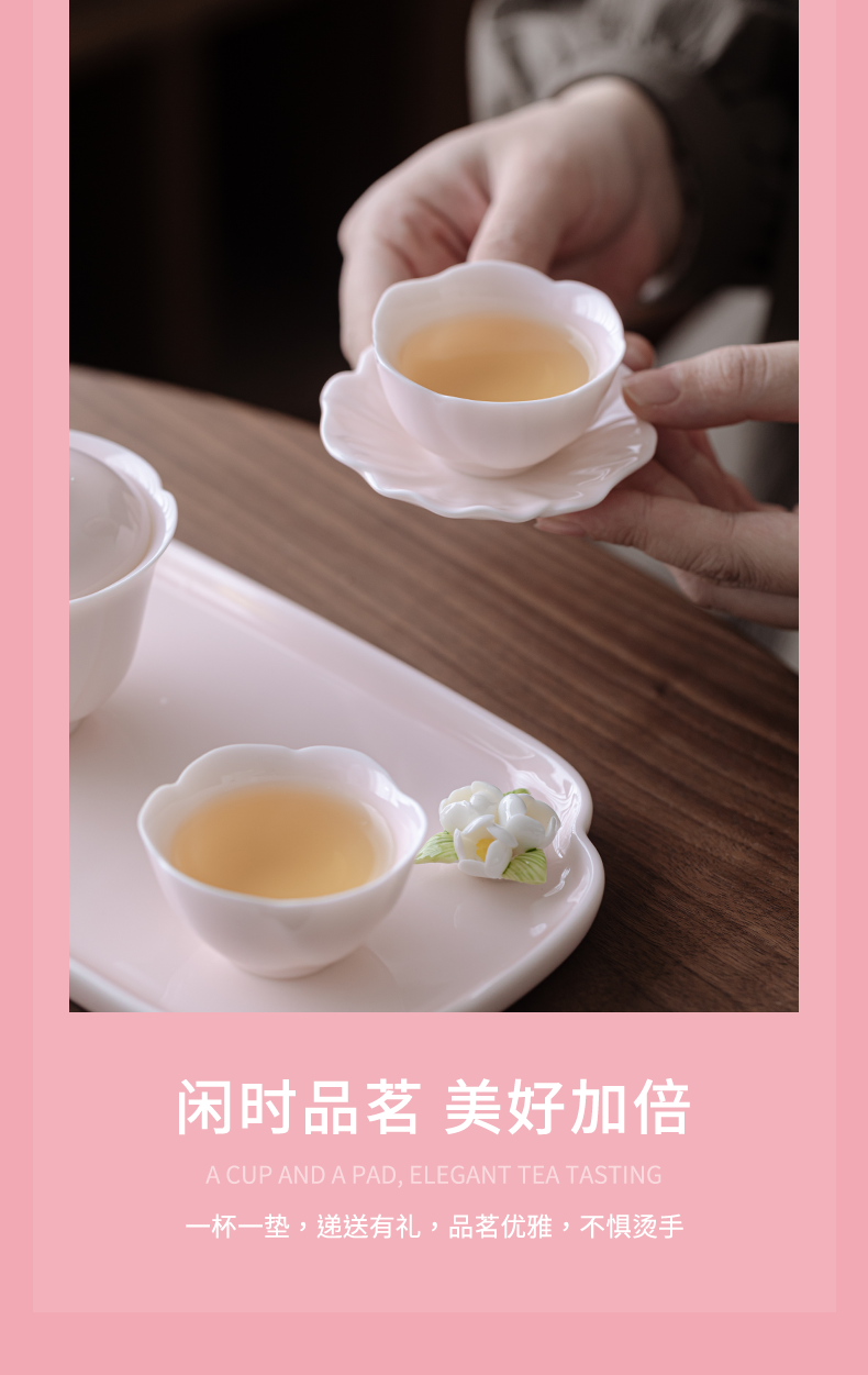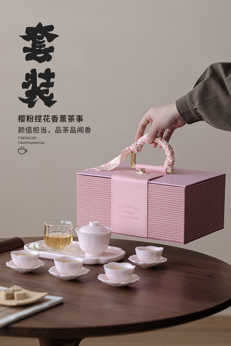 采用樱粉色为主色调,搭配精致的捏花造型,整体外观甜;捏花工艺精湛,展现出高超的制作水准体现了品质与价值;适合旅行、出差或户外使用让用户随时随地都能享受品茶