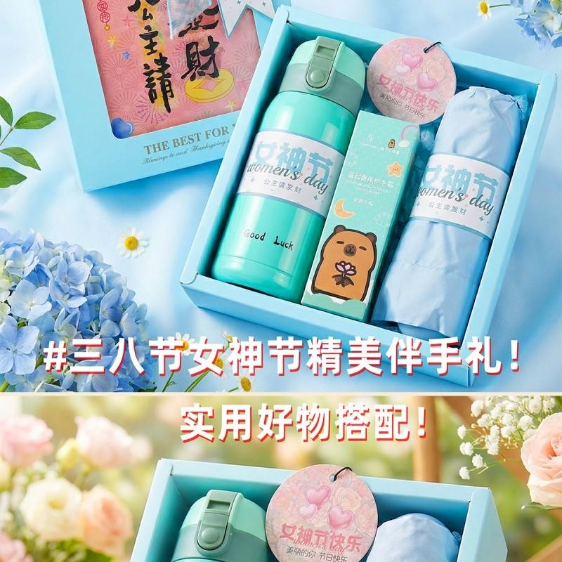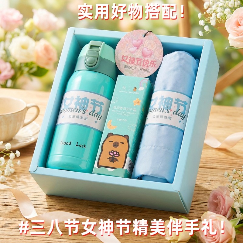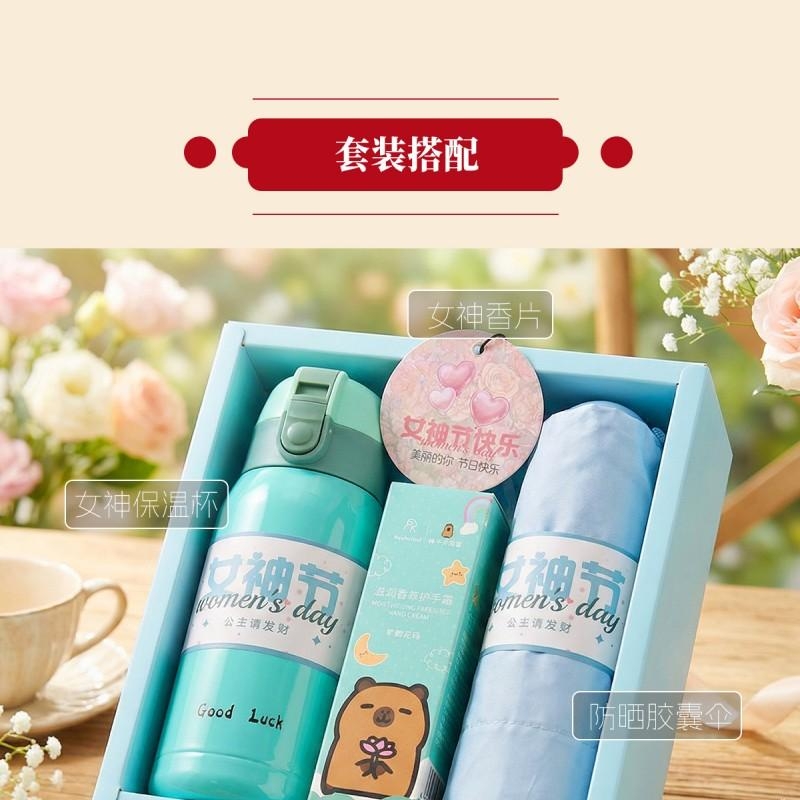 组合:女神节香片香挂*1、女神节胶囊防晒伞*1、女神节保温杯300ML*1、韩方莉水润护手霜60g*1