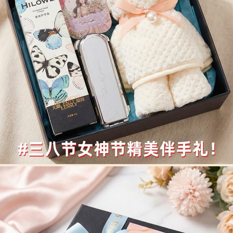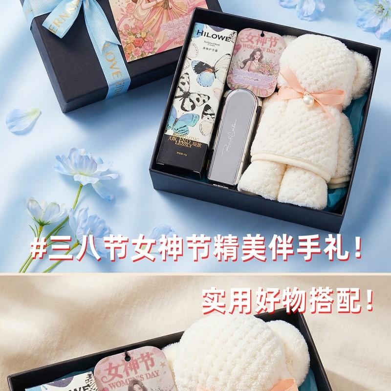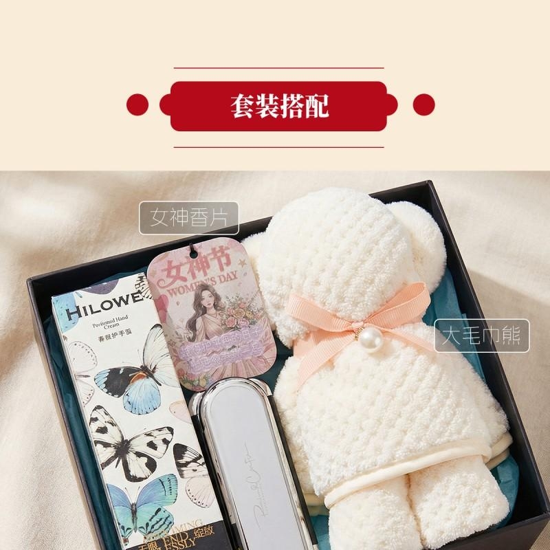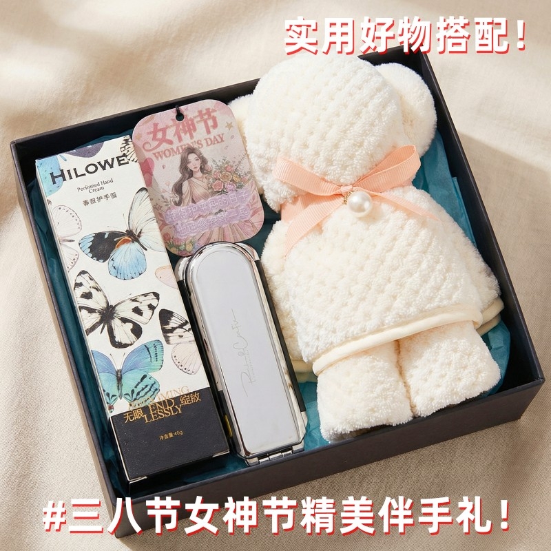 组合:折叠镜子头梳*1、女神节香片香挂*1、HILOWE香氛护手霜45g*1、菠萝格纹理创意小熊毛巾75*34CM*1