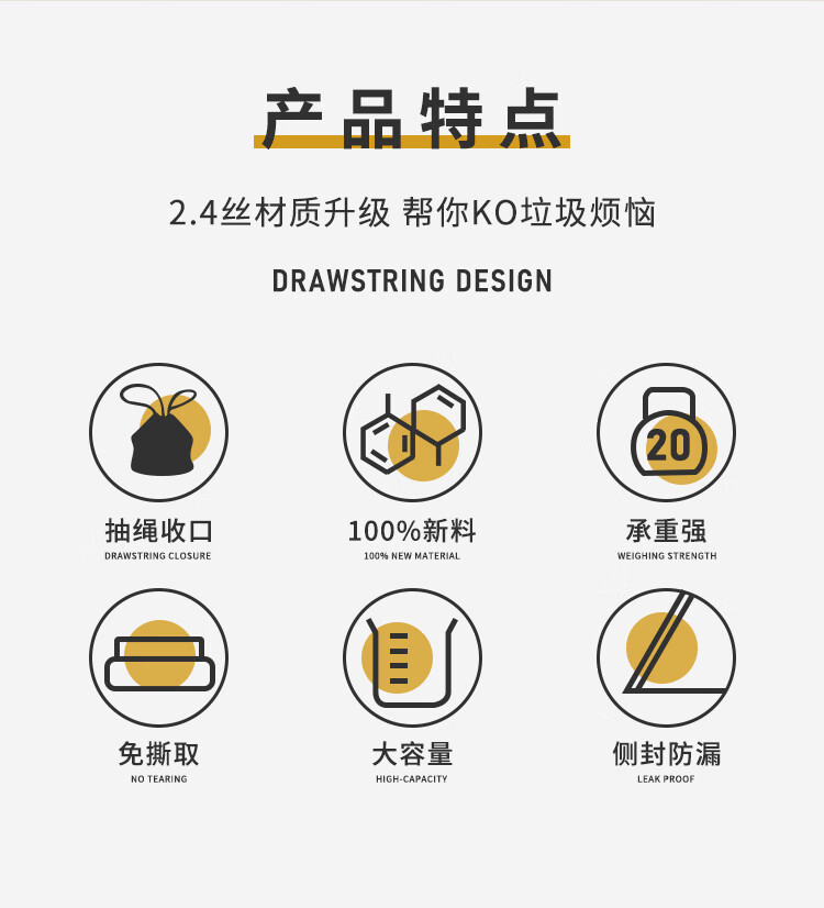 超厚2.4丝双面;免撕设计;抽绳收口