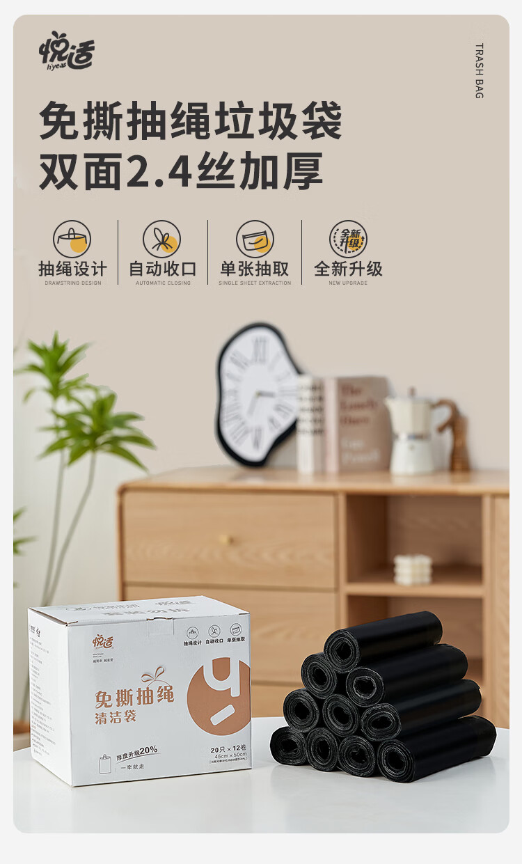 悦适 抽绳垃圾袋