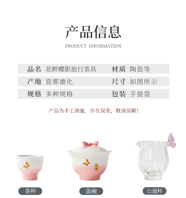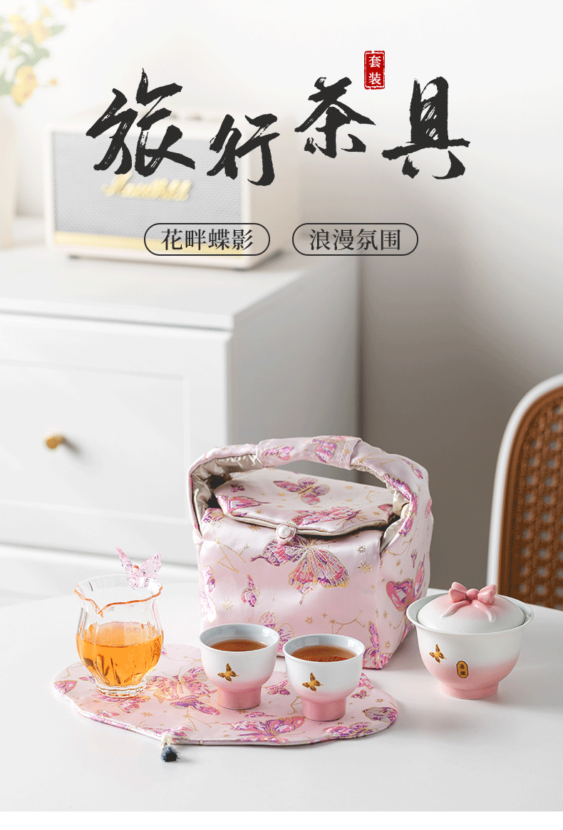 花畔蝶影旅行茶具-粉