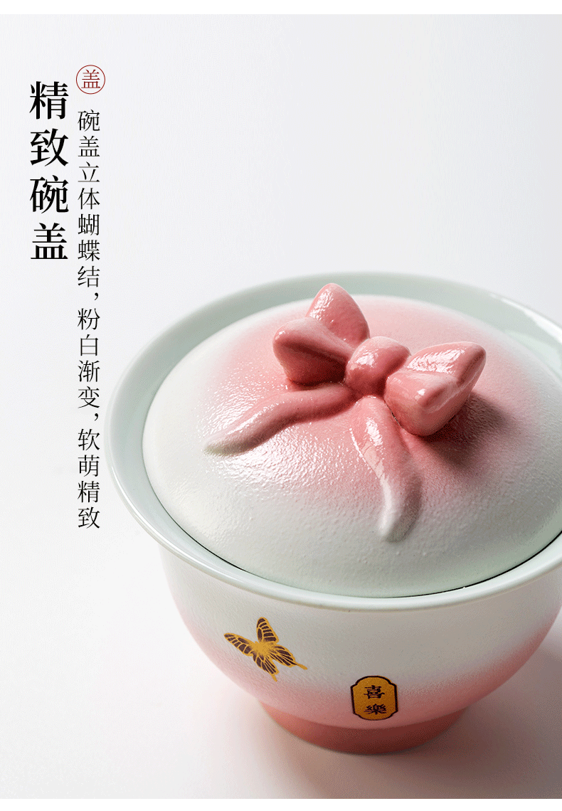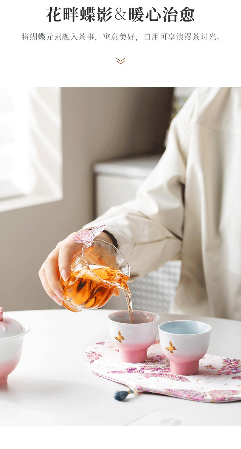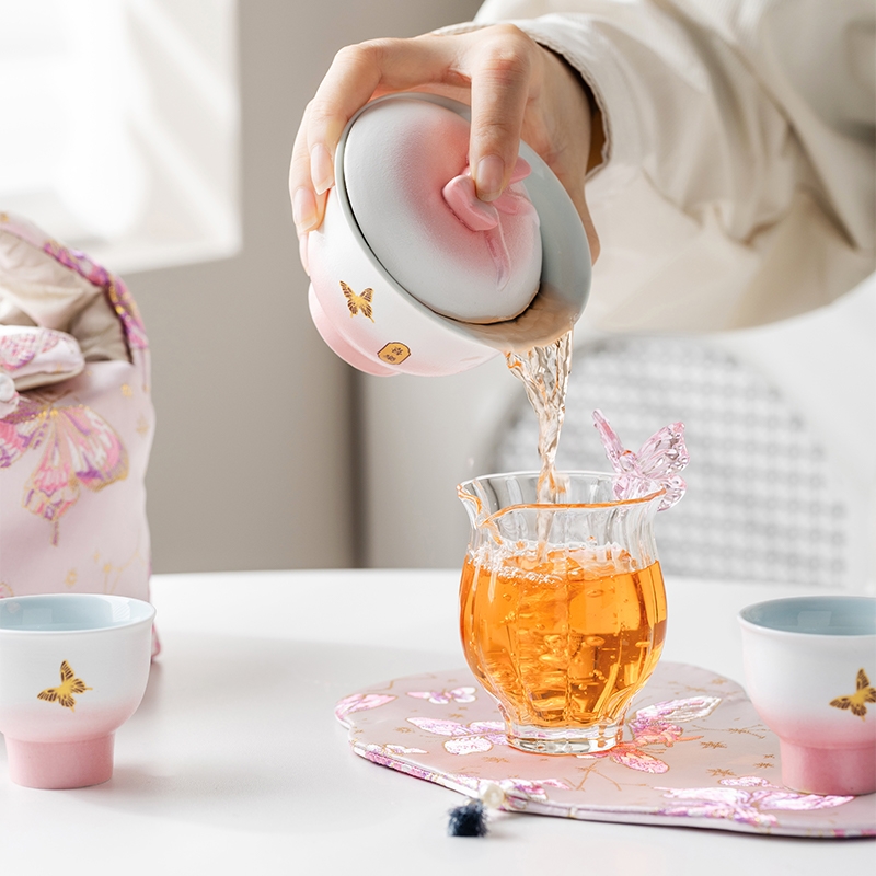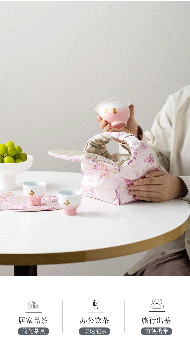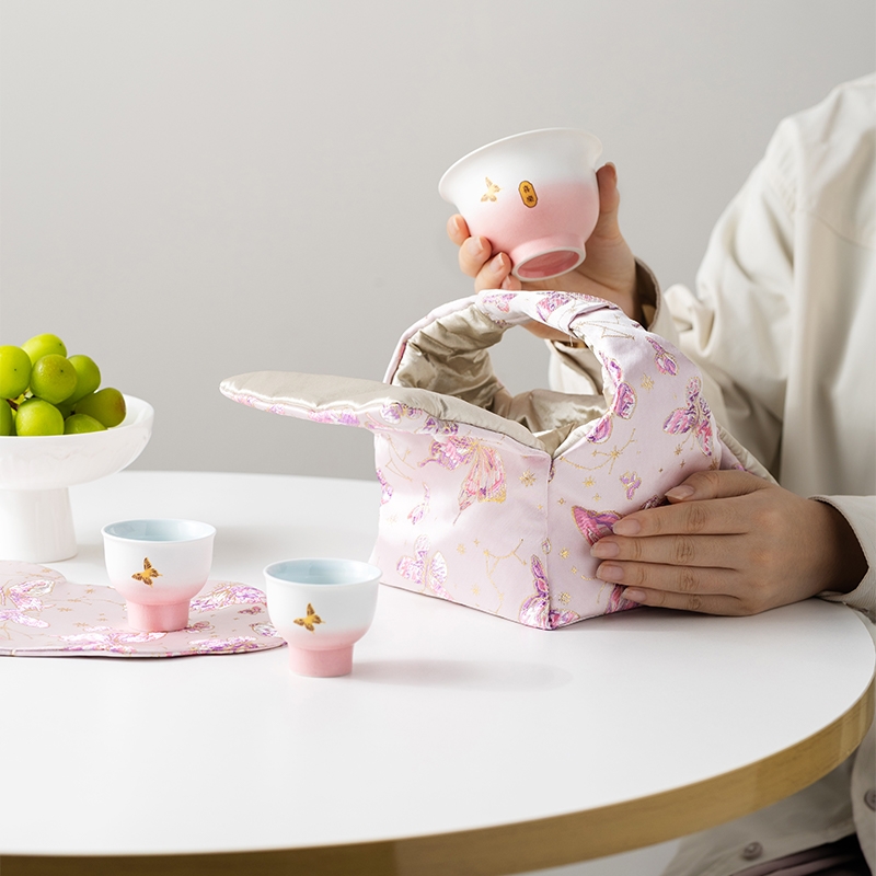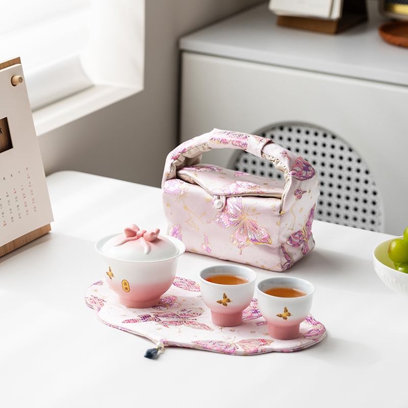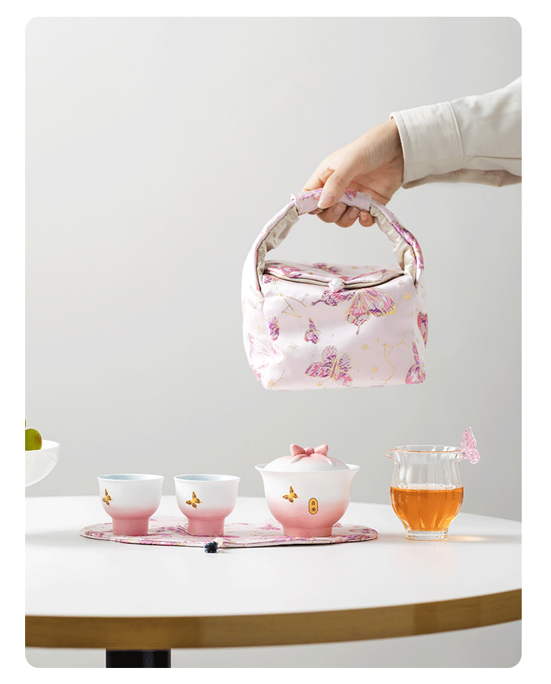 辞蕴 蝴蝶盖碗旅行茶具便捷收纳包套装
