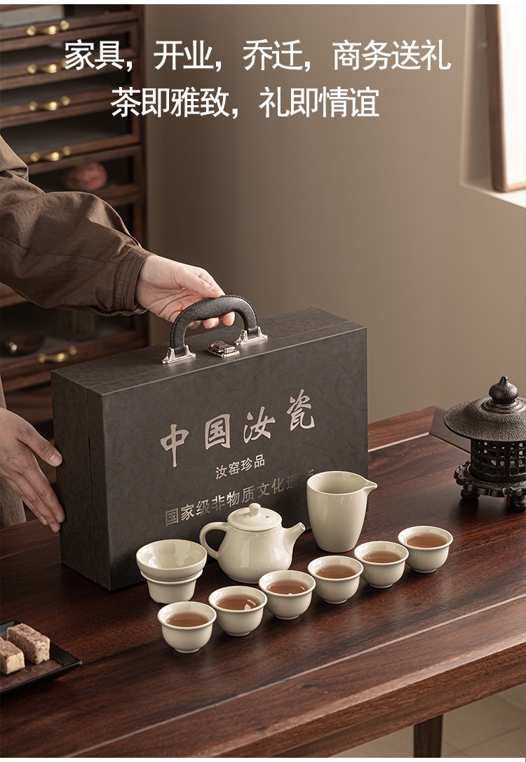 辞蕴 汝窑一壶六杯功夫茶具套装