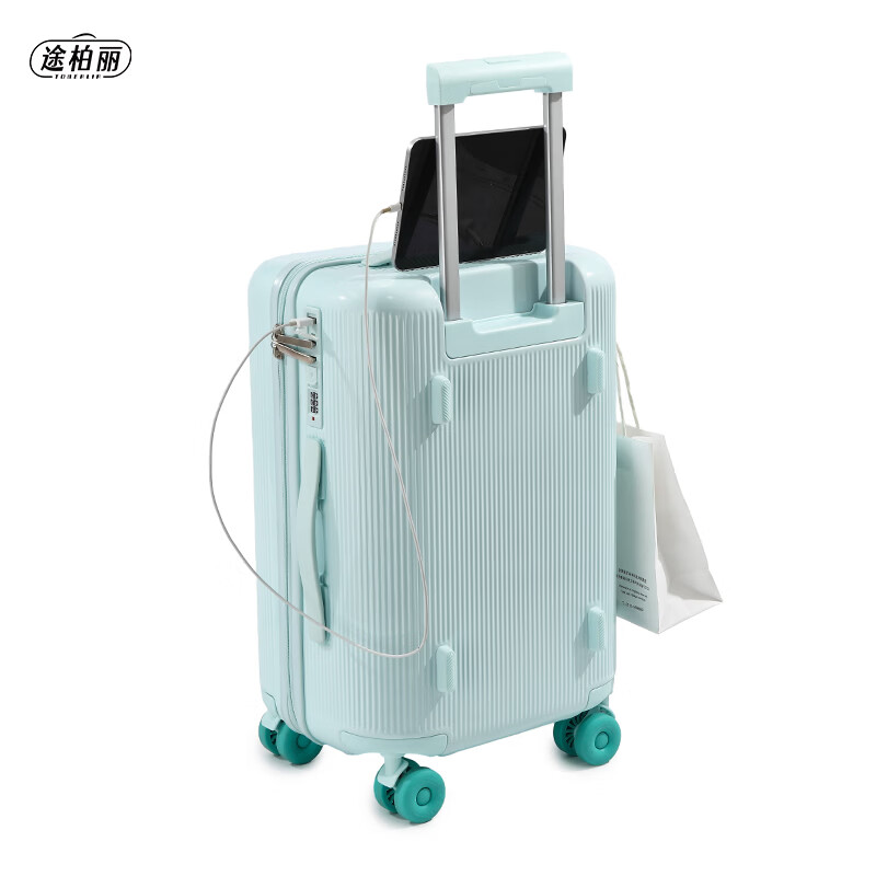 潮行π系类,简约潮流箱型搭配撞色静音轮,激发年轻本;加厚ABS+PC材质,抗摔耐磨;黄金3:7深仓设计,轻松收纳大件物品;外置充电接口,充电更方便;亲肤调皮绒内里,更好保护随行物品。