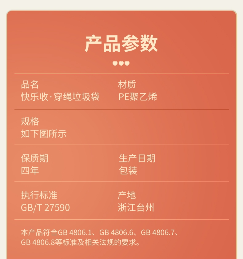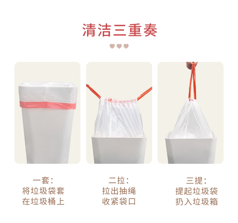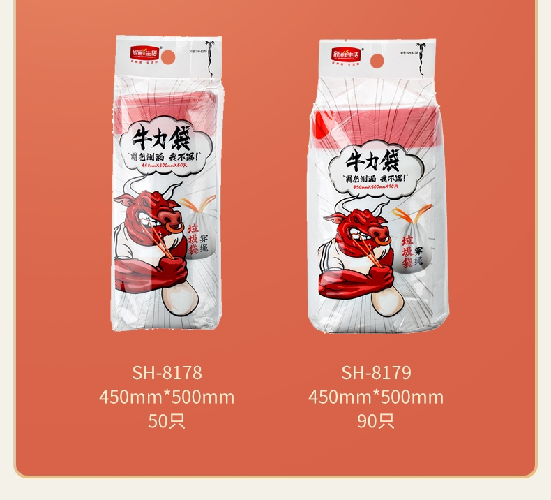 新鲜生活 不用撕 穿绳垃圾袋;450mm*500mm*90只;新鲜生活 不用撕 穿绳垃圾袋