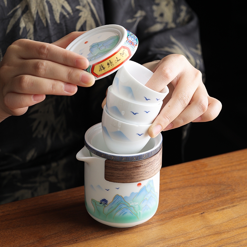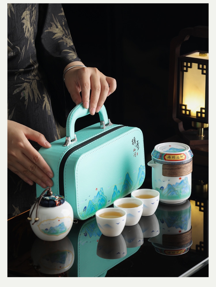 锦绣山河旅行茶具-蓝包