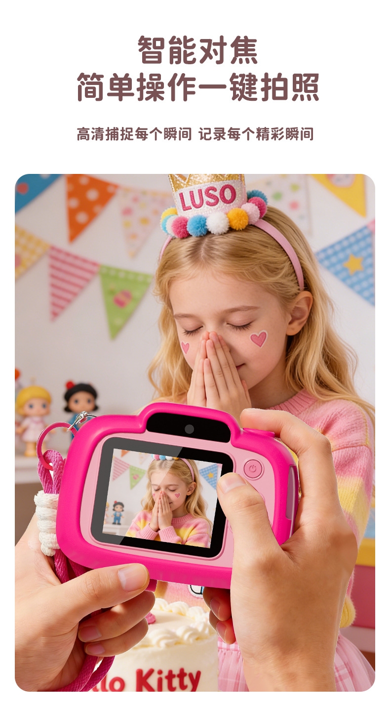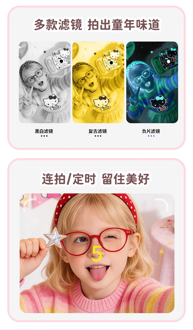 正版 IP 授权,颜值拉满;操作简单,一键拍摄,内置防摔外壳;安全易用,家长放心