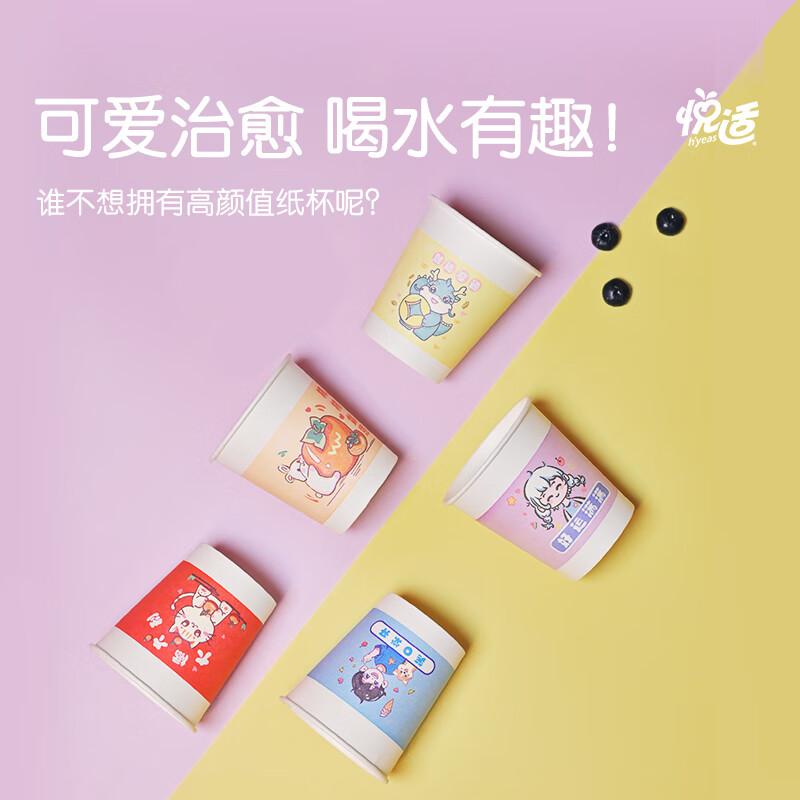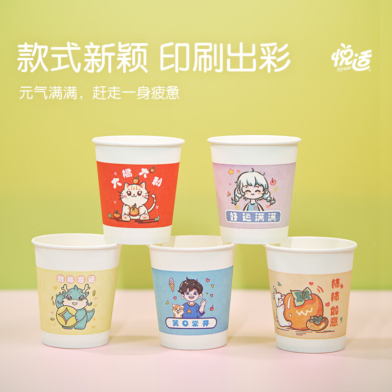 悦适 五福一次性加厚加硬环保纸杯