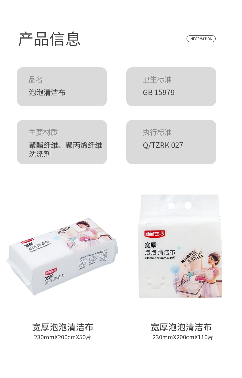 新鲜生活 宽厚泡泡清洁布110片SH-7417
