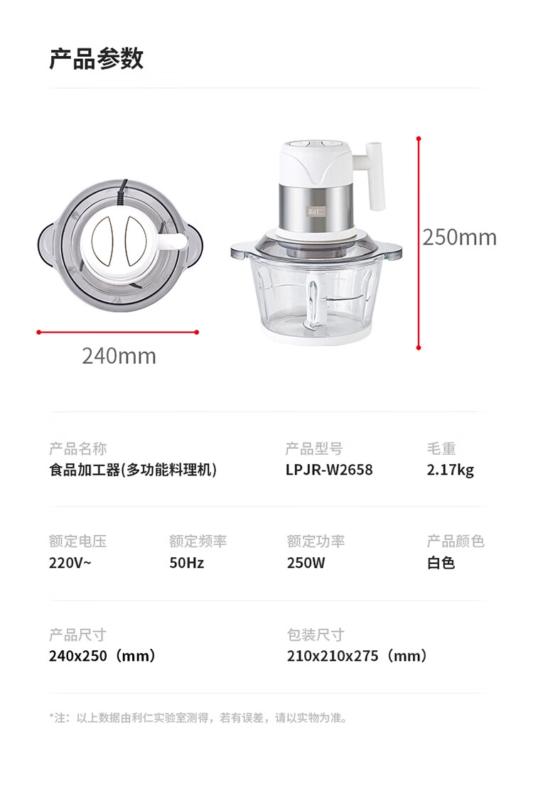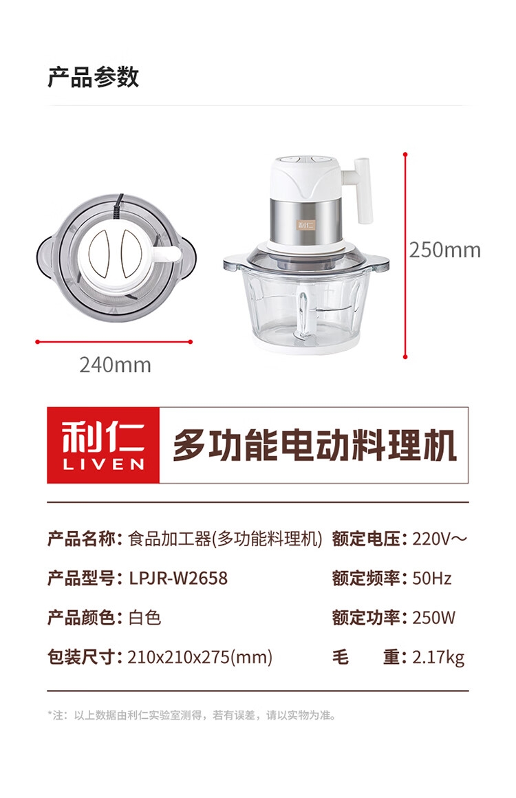 利仁 2L绞肉机搅拌机电动绞馅机LPJR-W2658