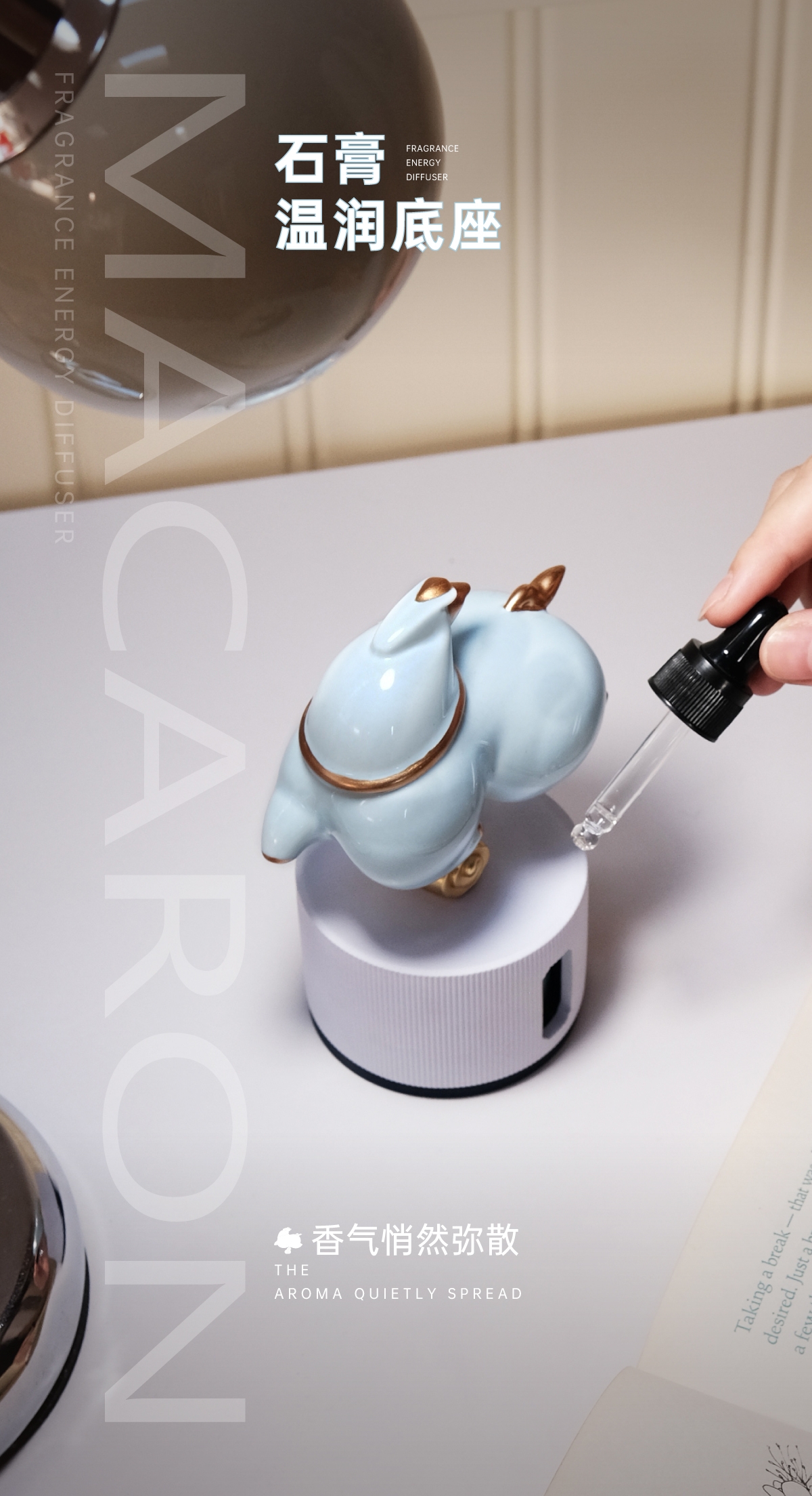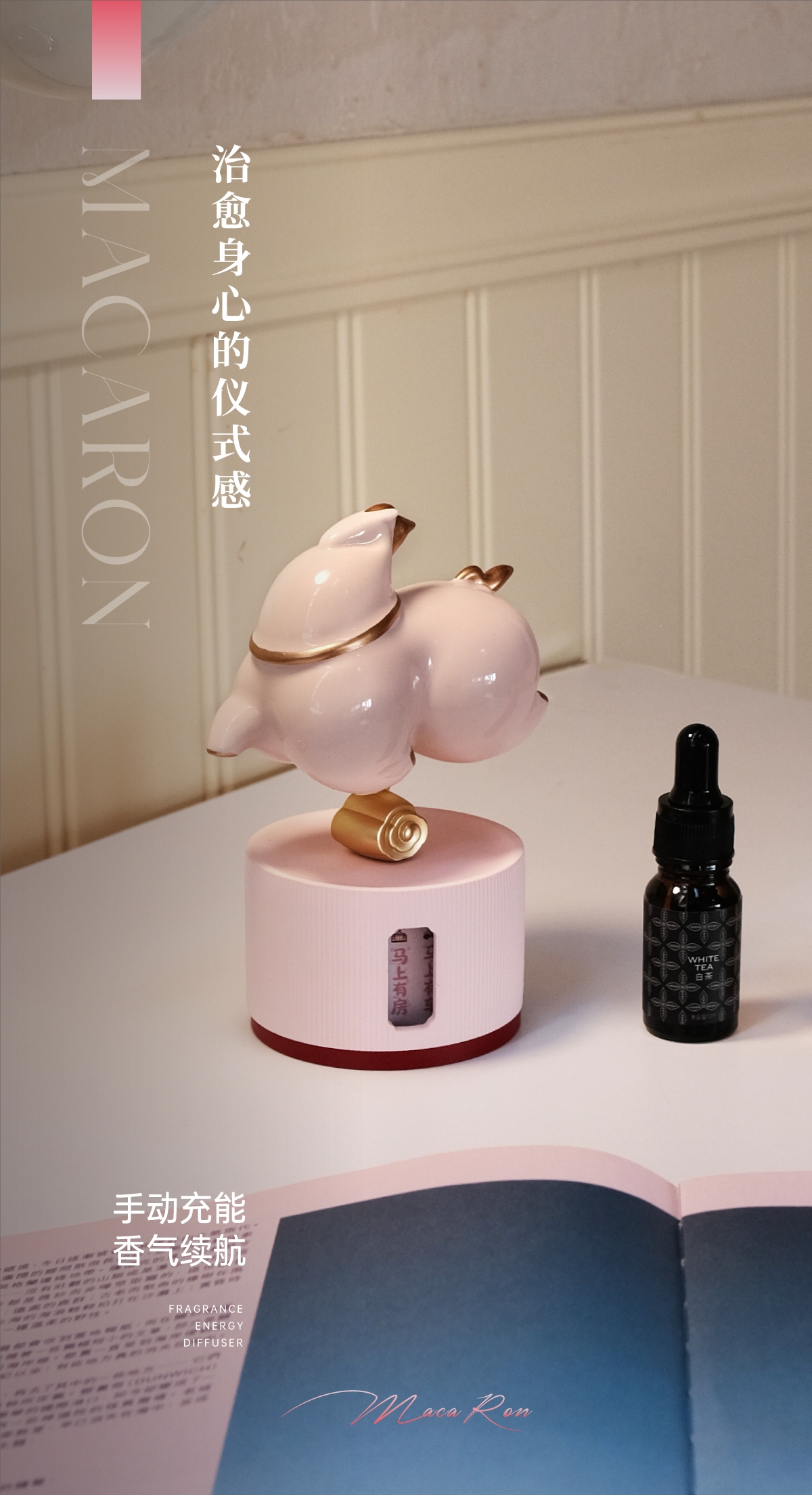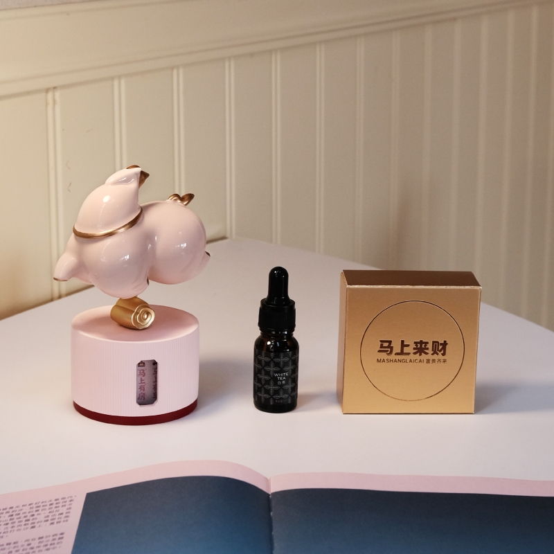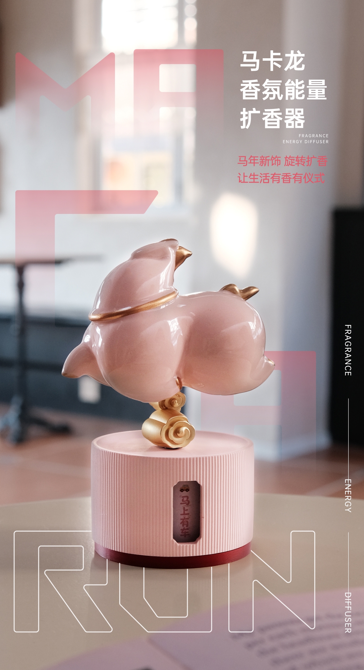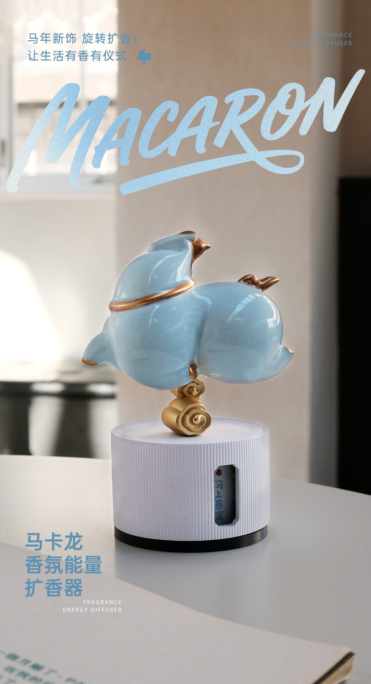 陶瓷祥云唐马,灵动亦存祝福;侧边藏惊喜寄语,为日常注入温柔祝愿;手动充能,香气续航,治愈身心的仪式感