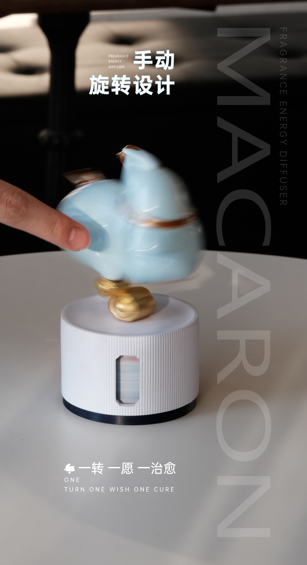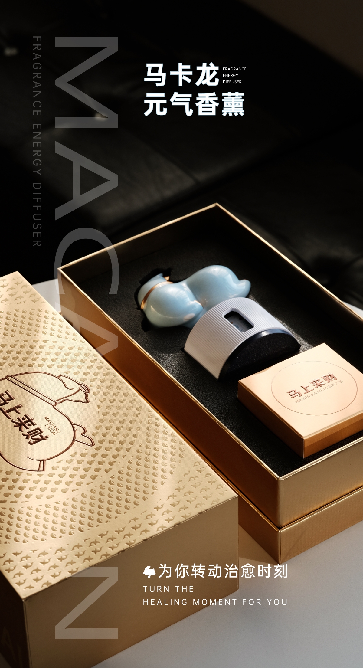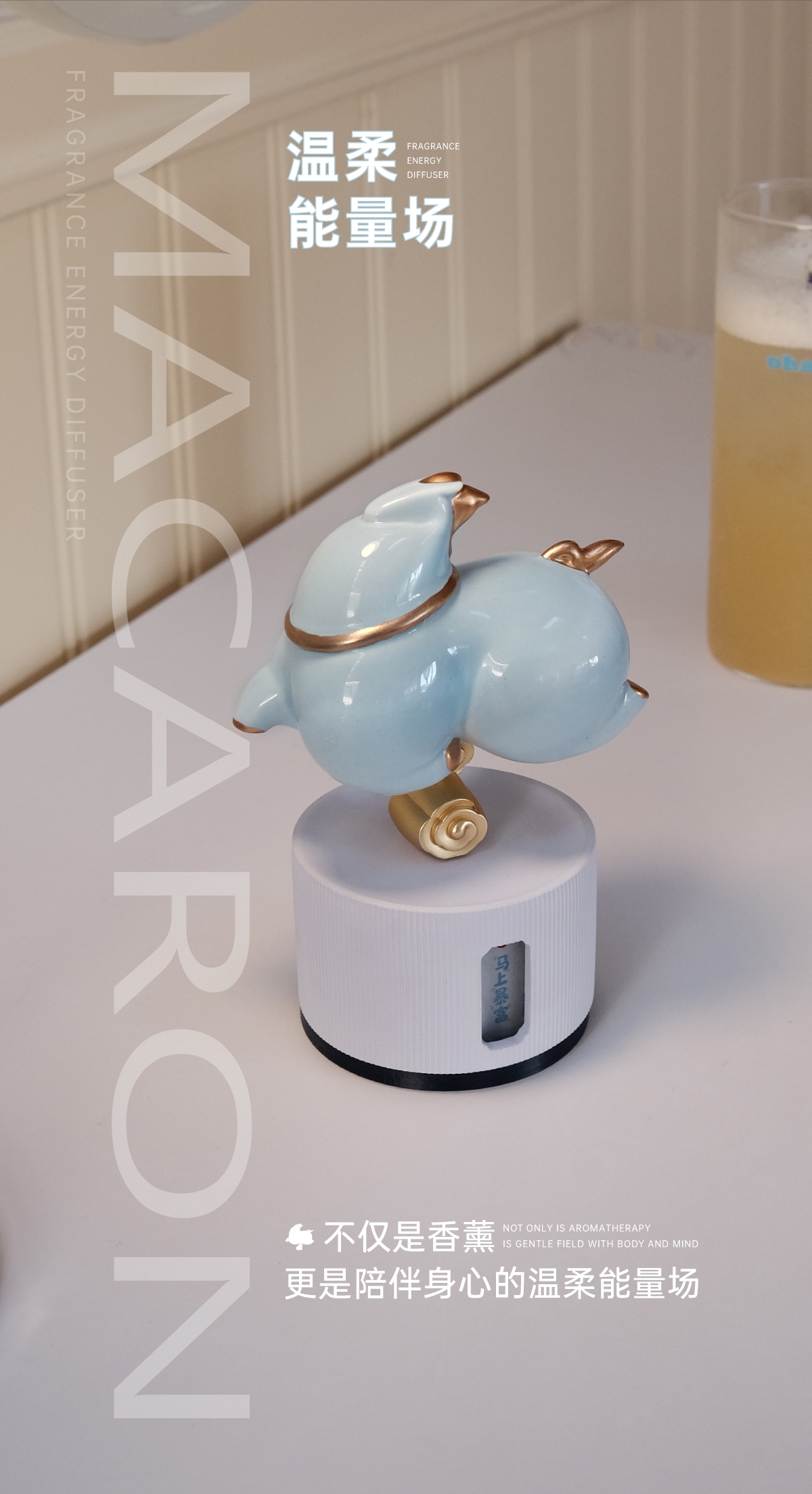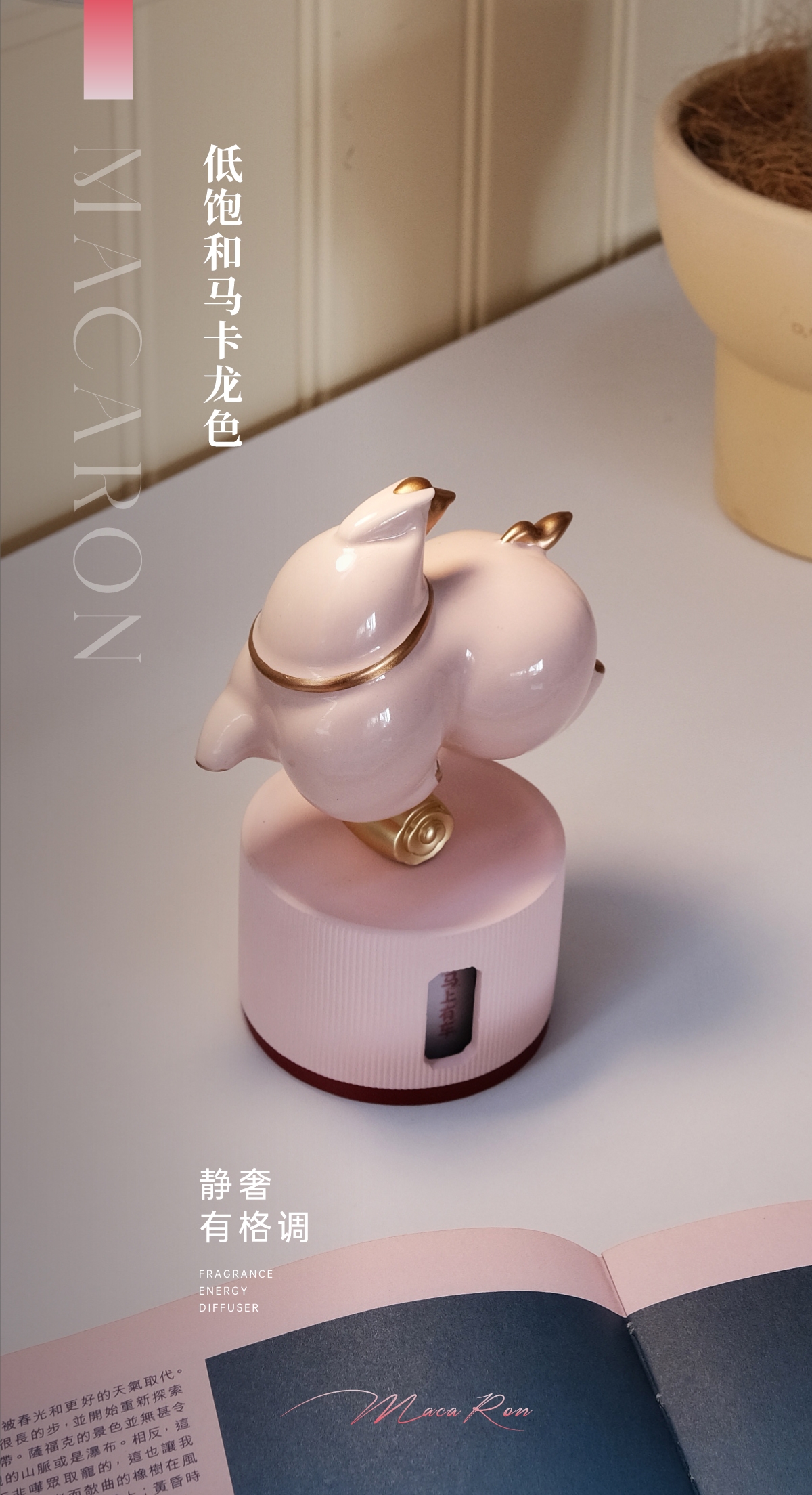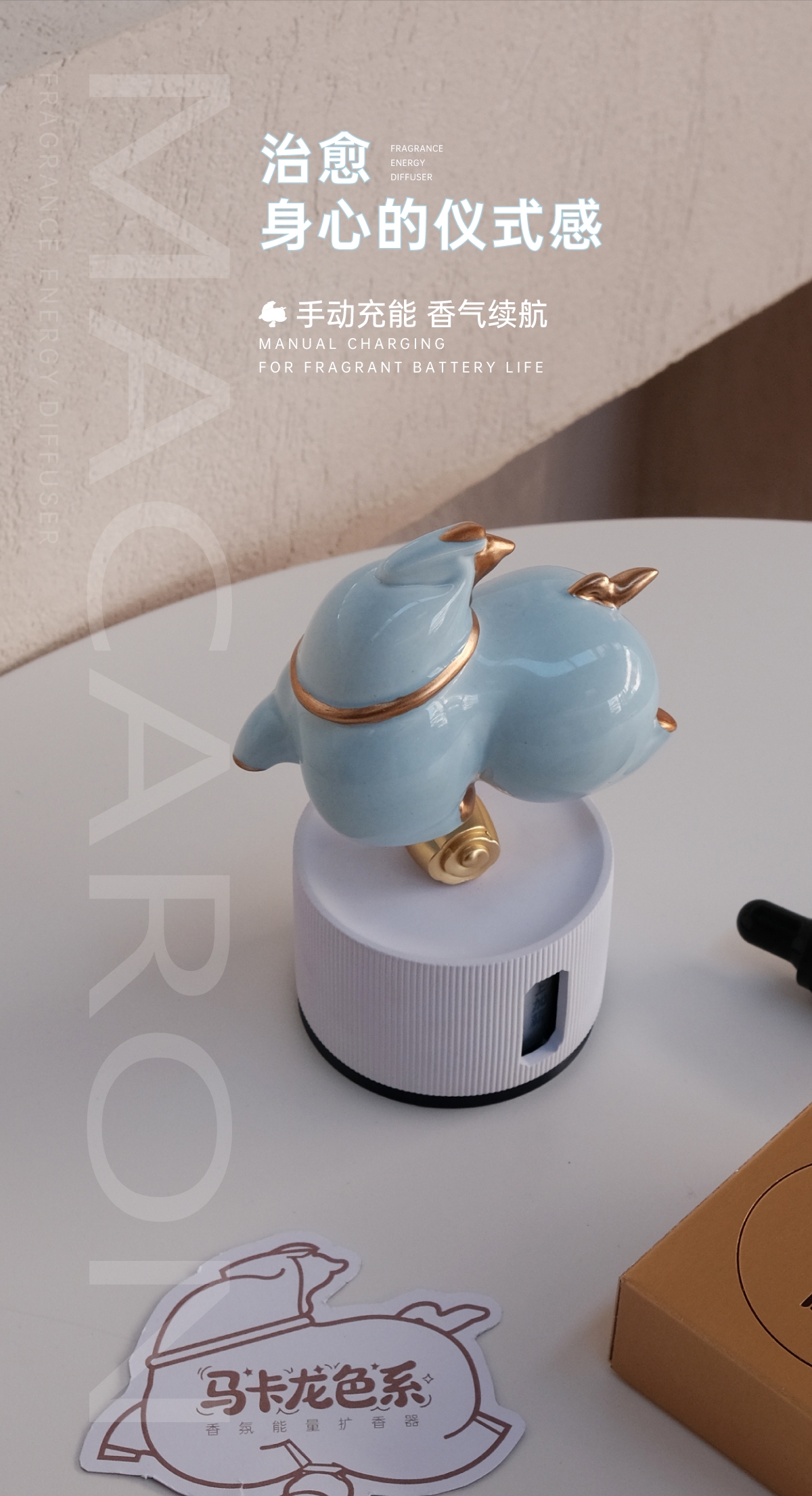 陶瓷祥云唐马,灵动亦存祝福;侧边藏惊喜寄语,为日常注入温柔祝愿;手动充能,香气续航,治愈身心的仪式感