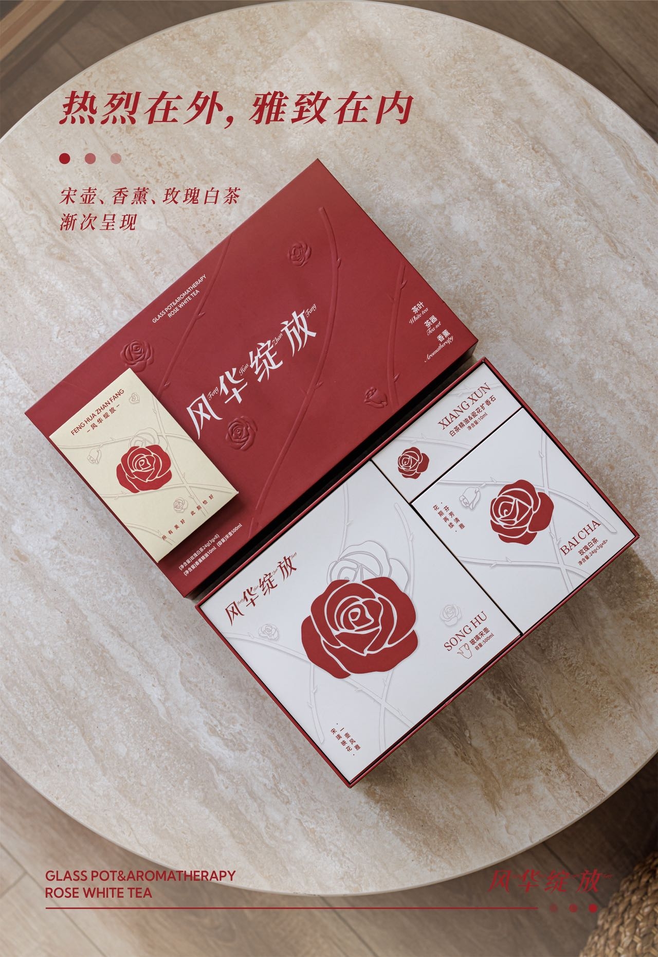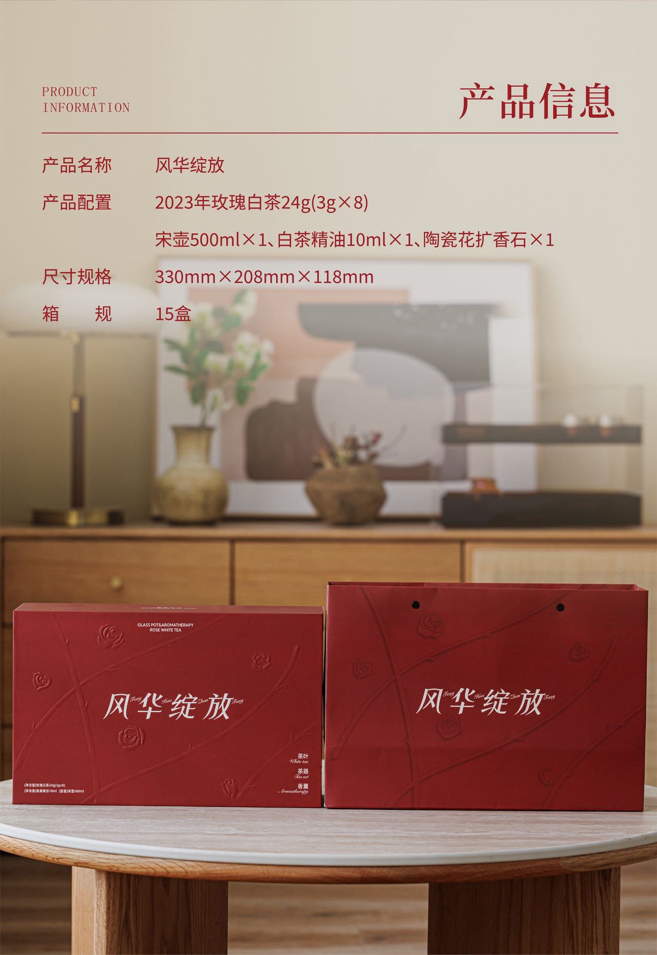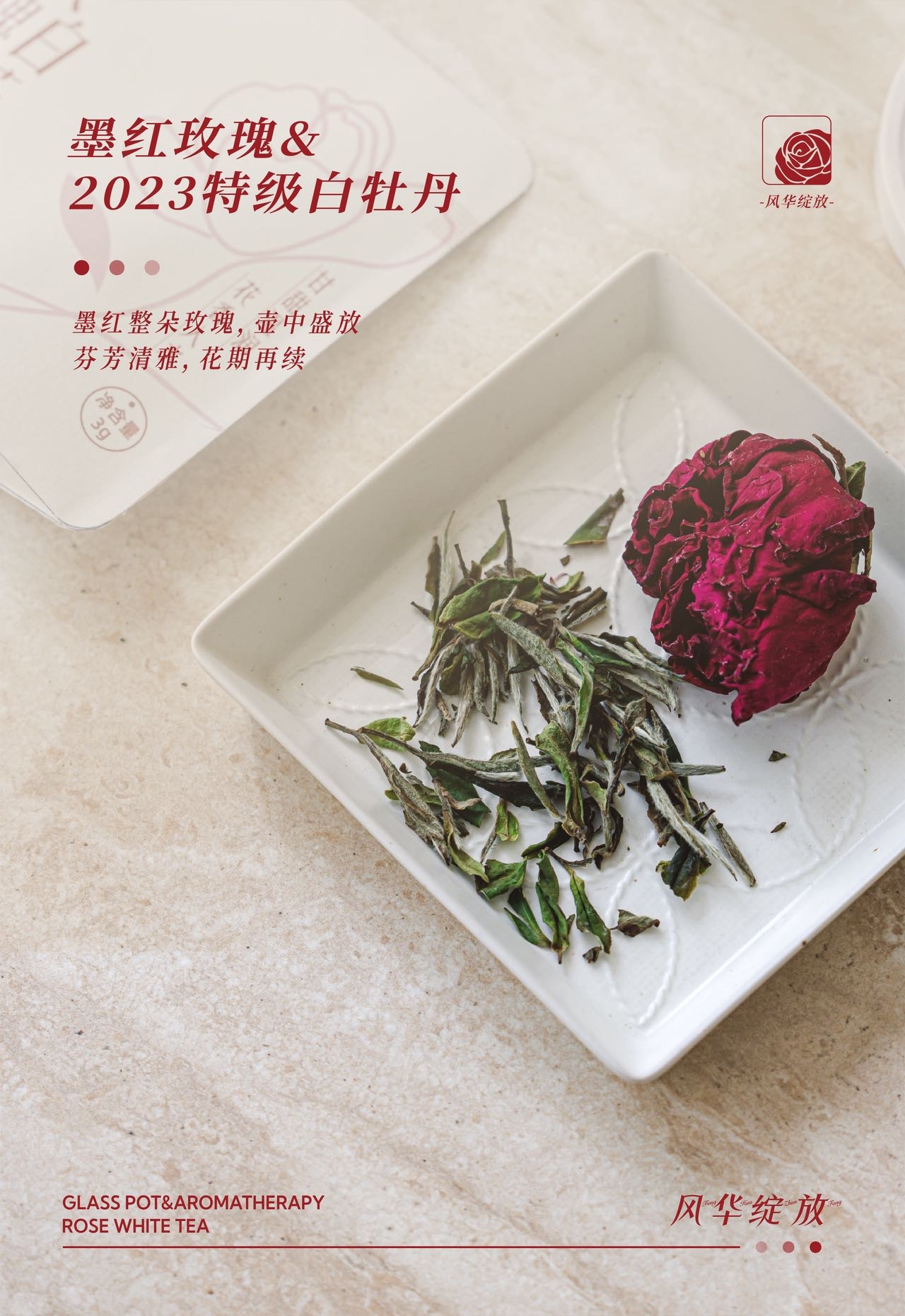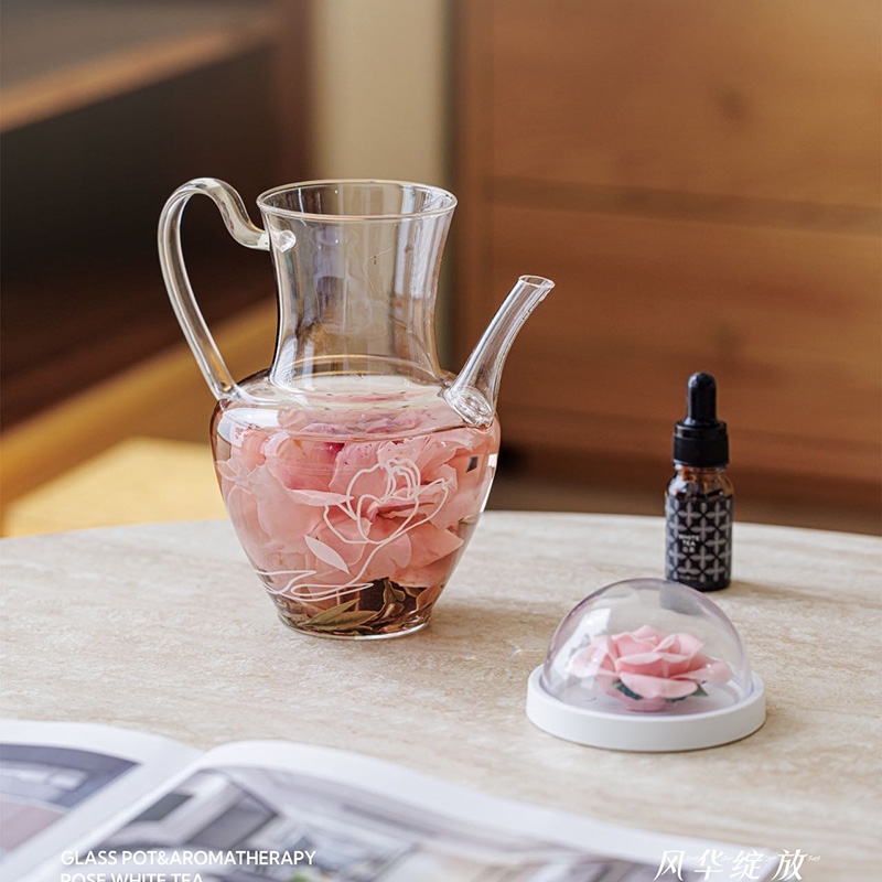 配置:2023年特级白牡丹、重瓣红玫瑰 24g(3g*8) 玻璃壶500ml*1 白茶精油*1 陶瓷花*1