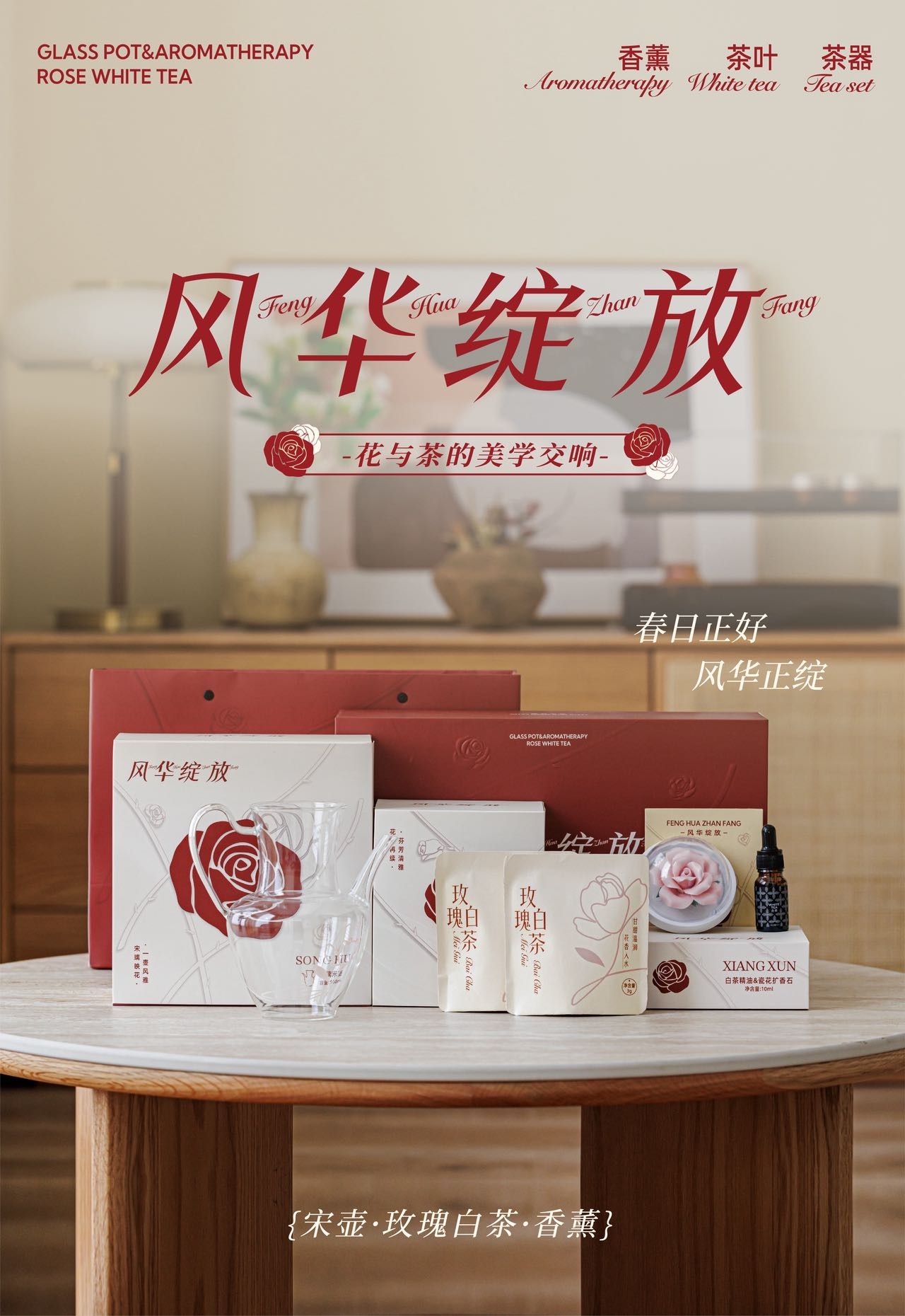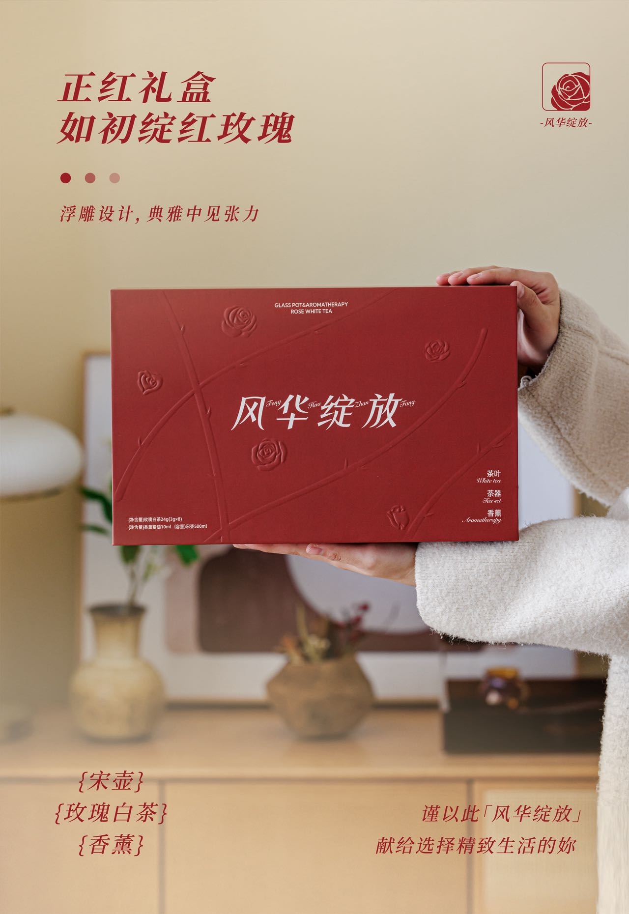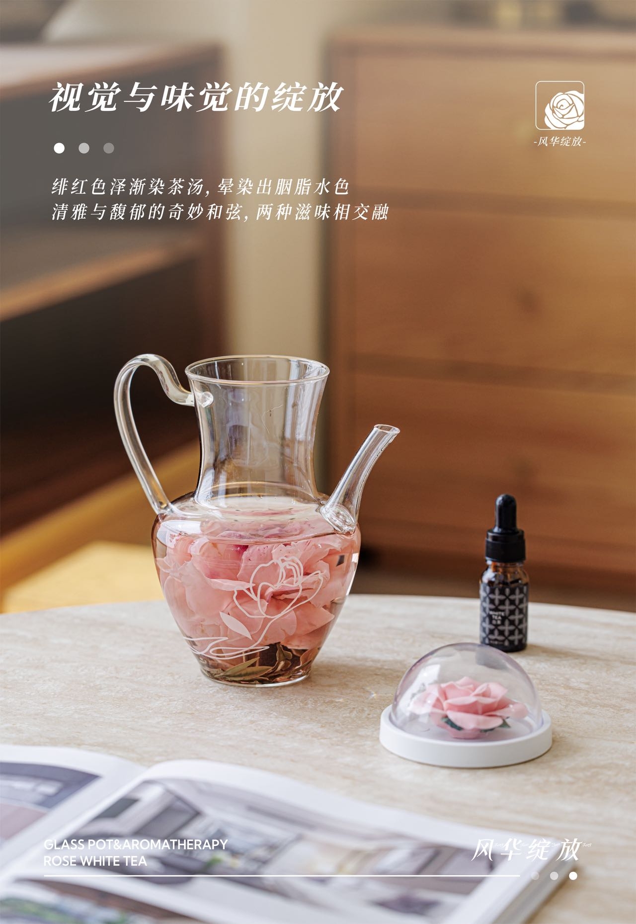 配置:2023年特级白牡丹、重瓣红玫瑰 24g(3g*8) 玻璃壶500ml*1 白茶精油*1 陶瓷花*1