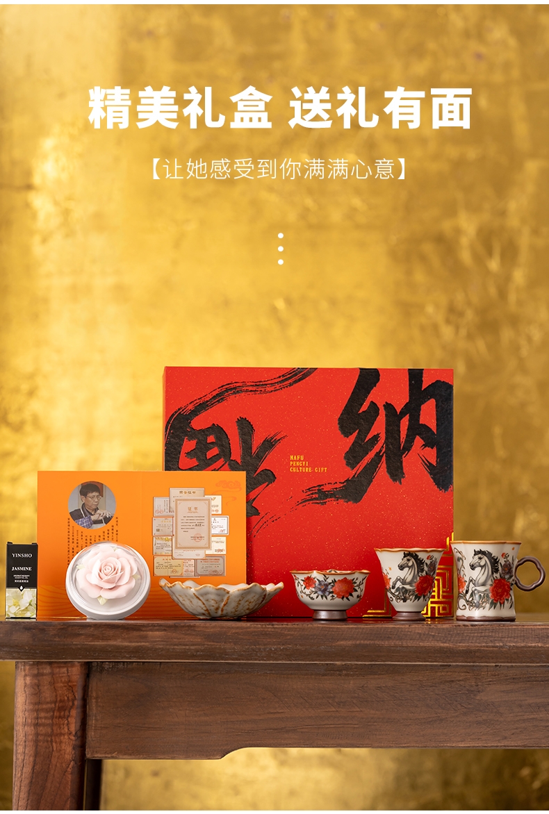 配 制:1手柄杯 1闻香杯 1碗 1香盘 1玫瑰瓷雕扩香器 1精油 1收藏证书 1礼盒 手提袋