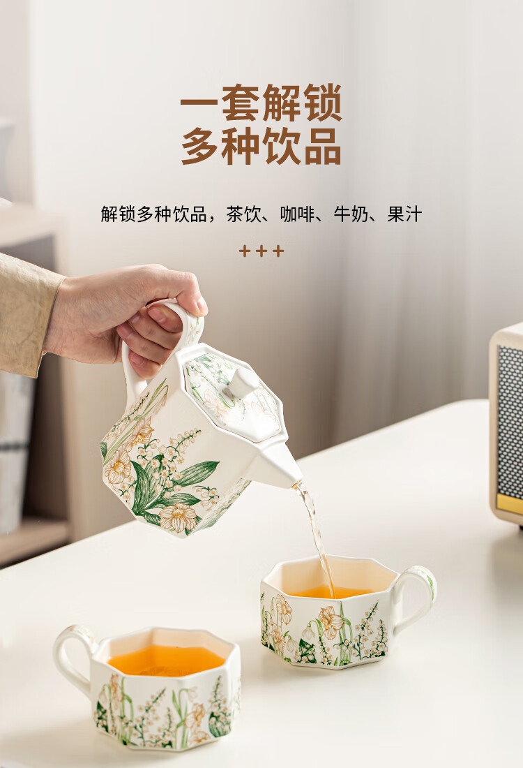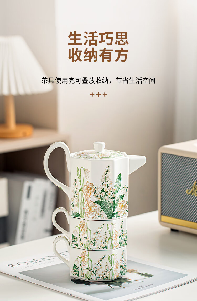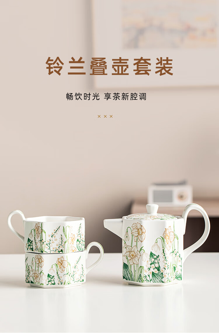 金镶玉 陶瓷家用茶具套装铃兰叠壶套装