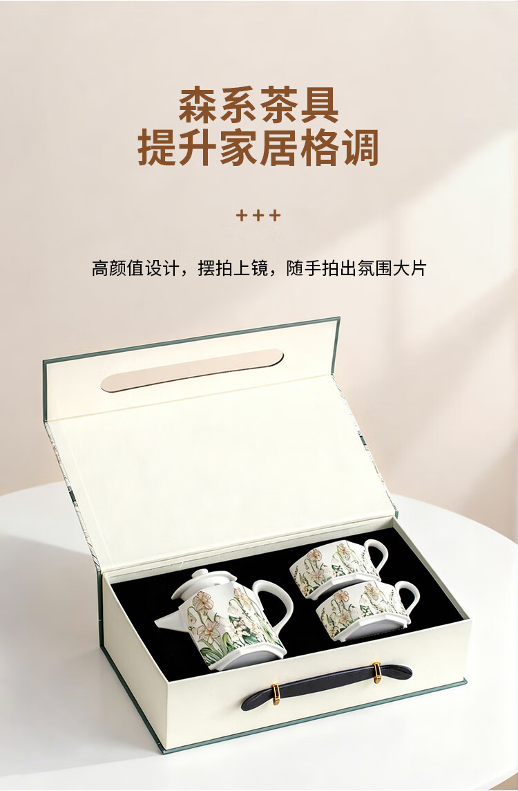 配置清单:茶壶*1 茶杯*2 礼盒*1