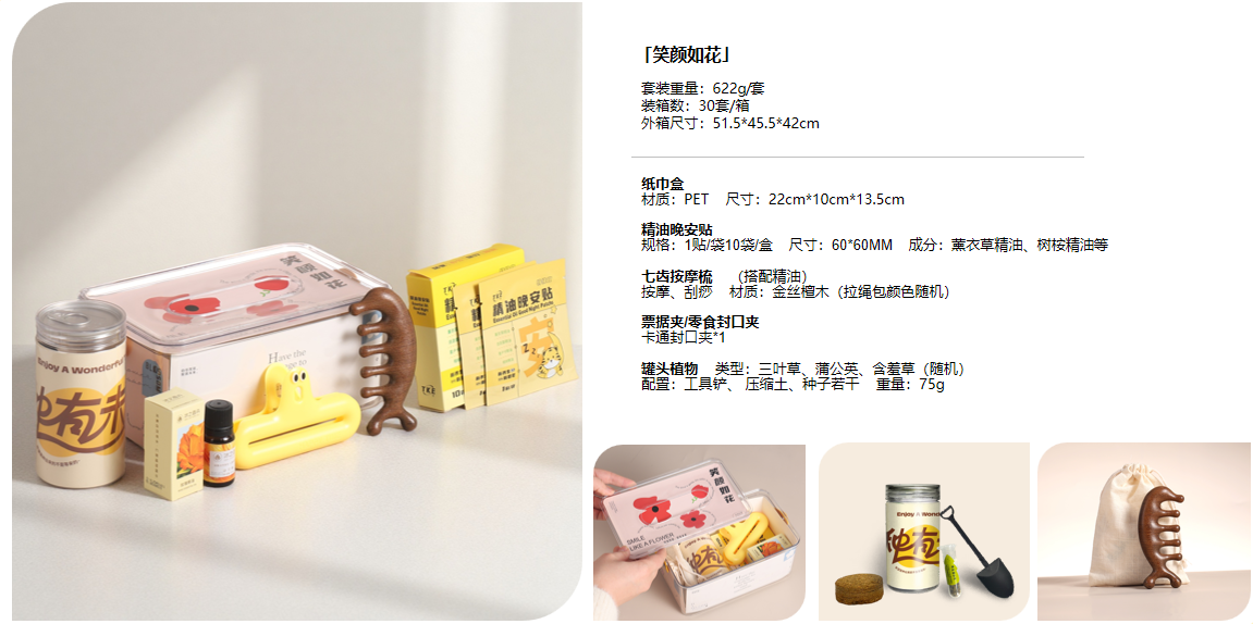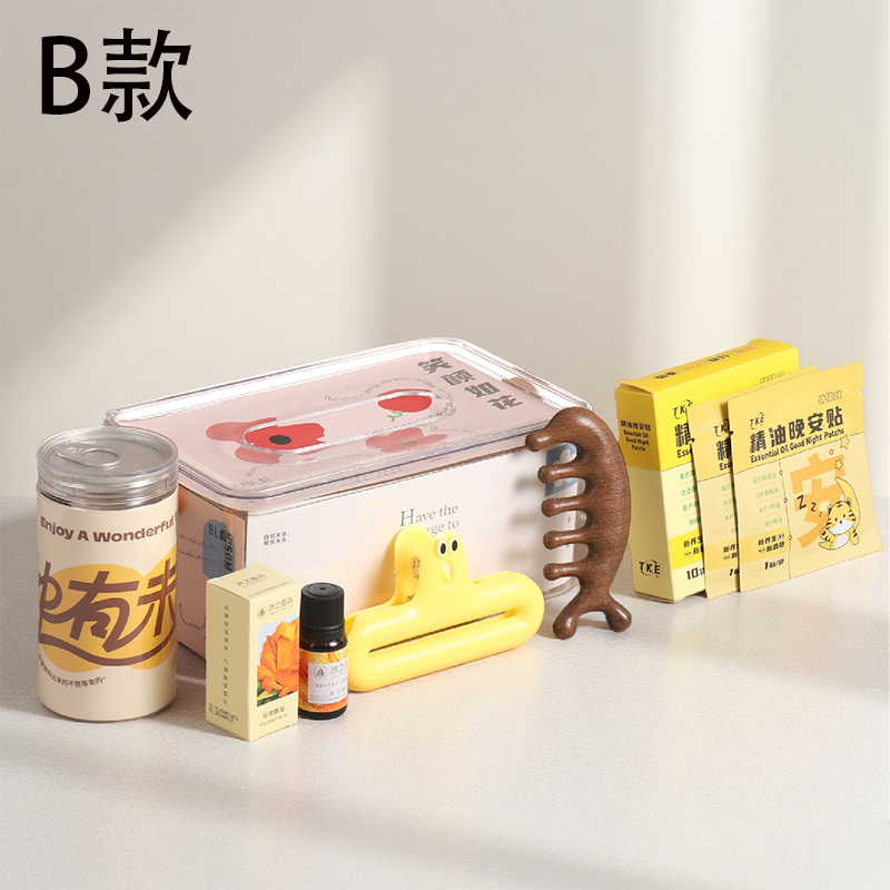 B款配置:纸巾盒 精油晚安贴 七齿按摩梳 票据夹/零食封口夹罐头植物