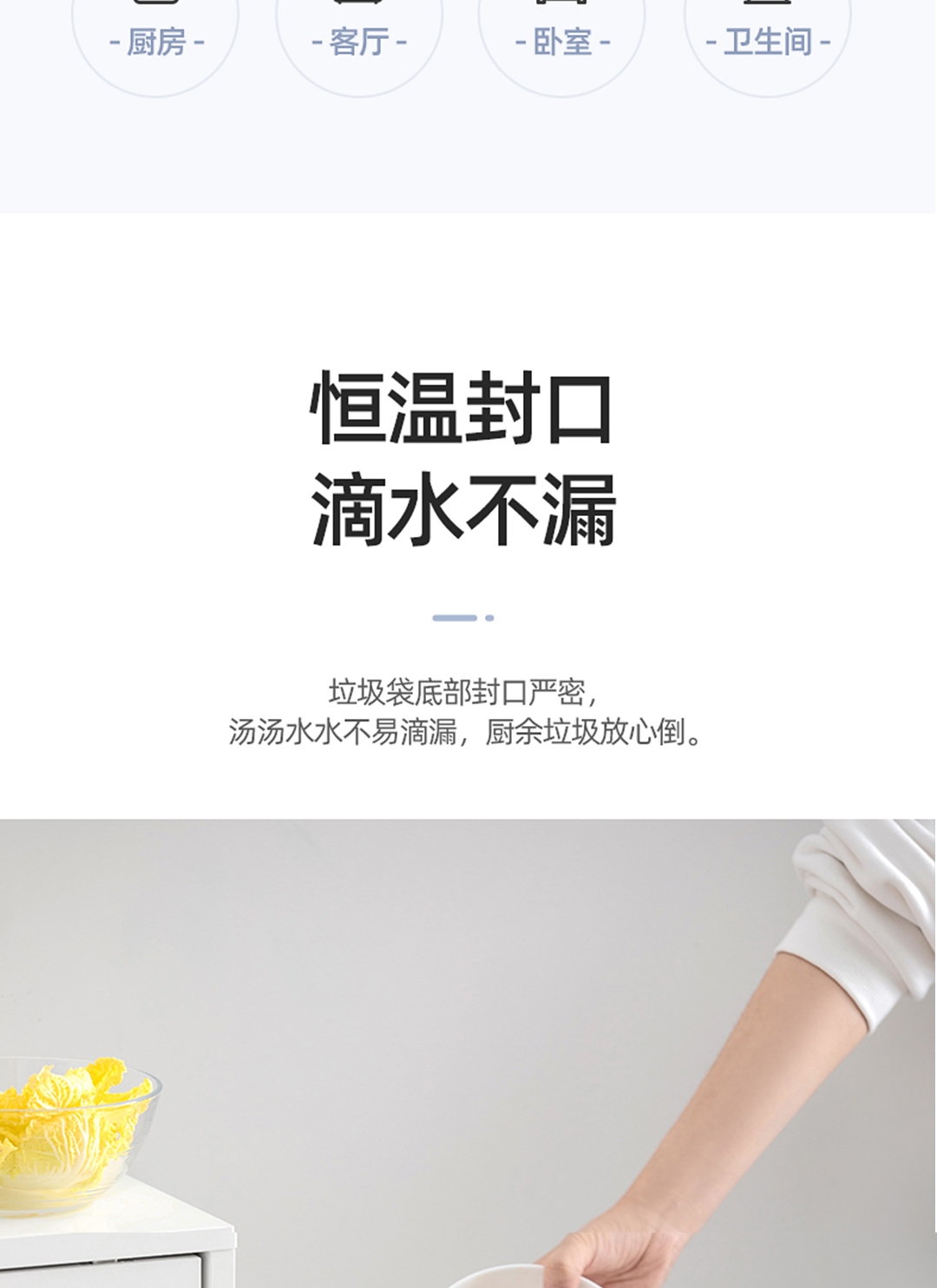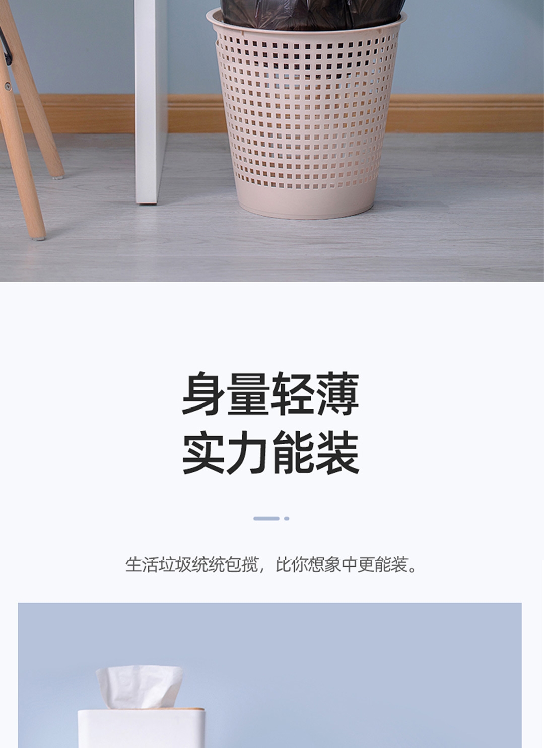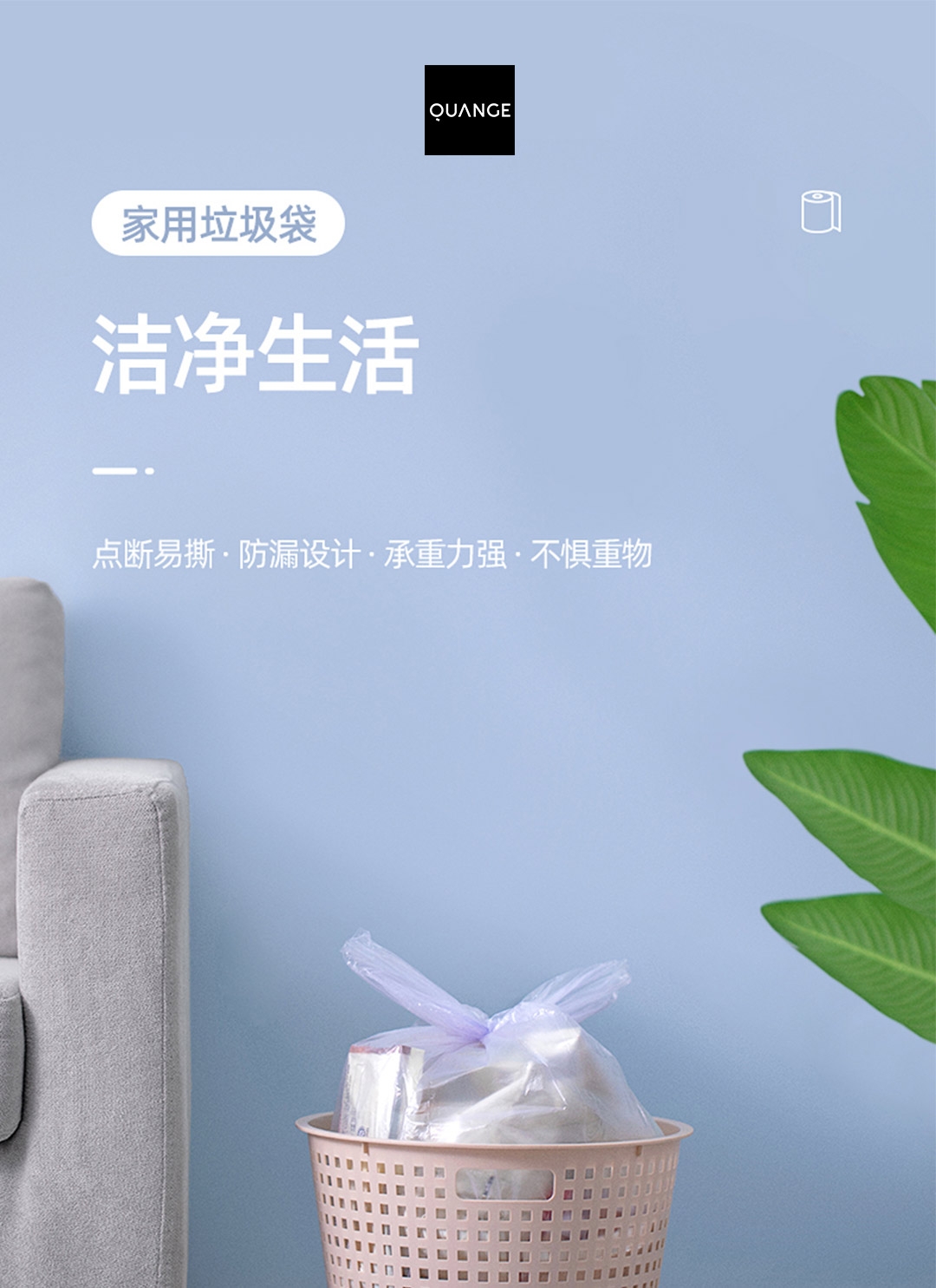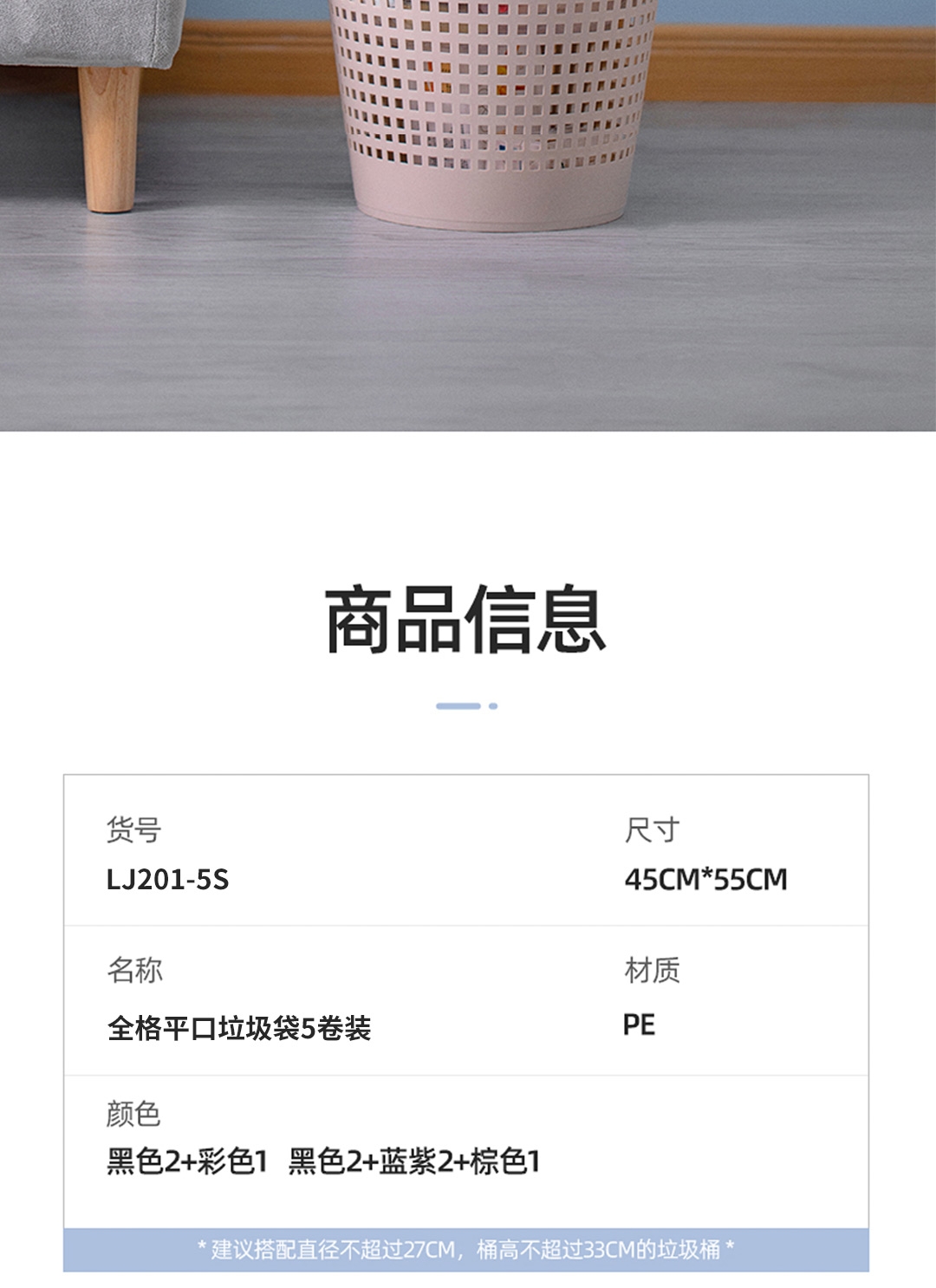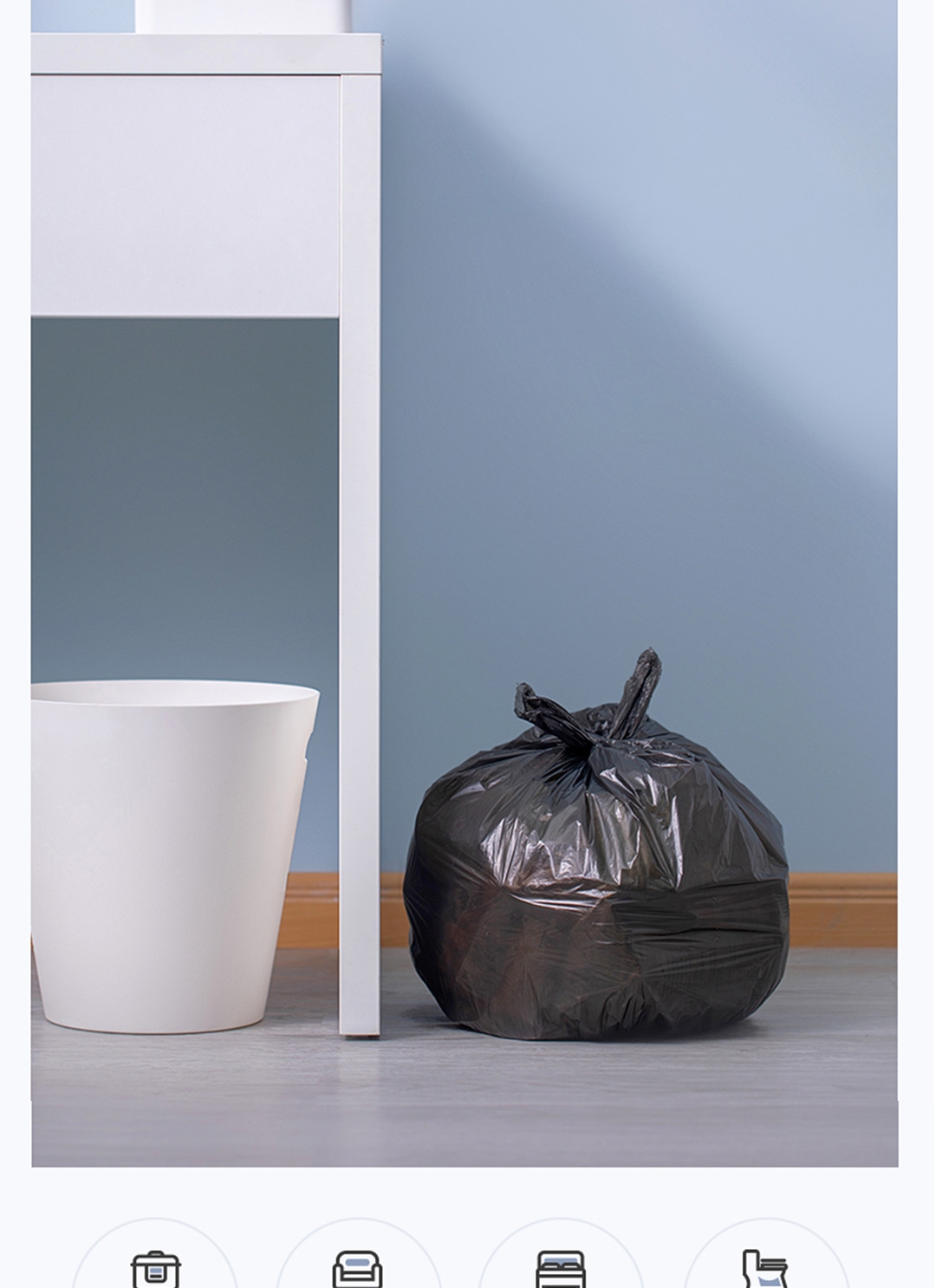 45x55cm大尺寸垃圾袋 一体成型,不易扯破;恒温封口工艺,点断设计,不易撕取;八角封口,受力均匀,承重力强,防漏设计