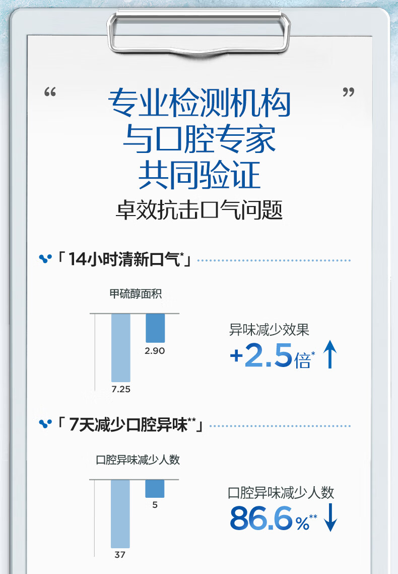 专攻异味 立感清新;减少口腔异味;温和不刺激