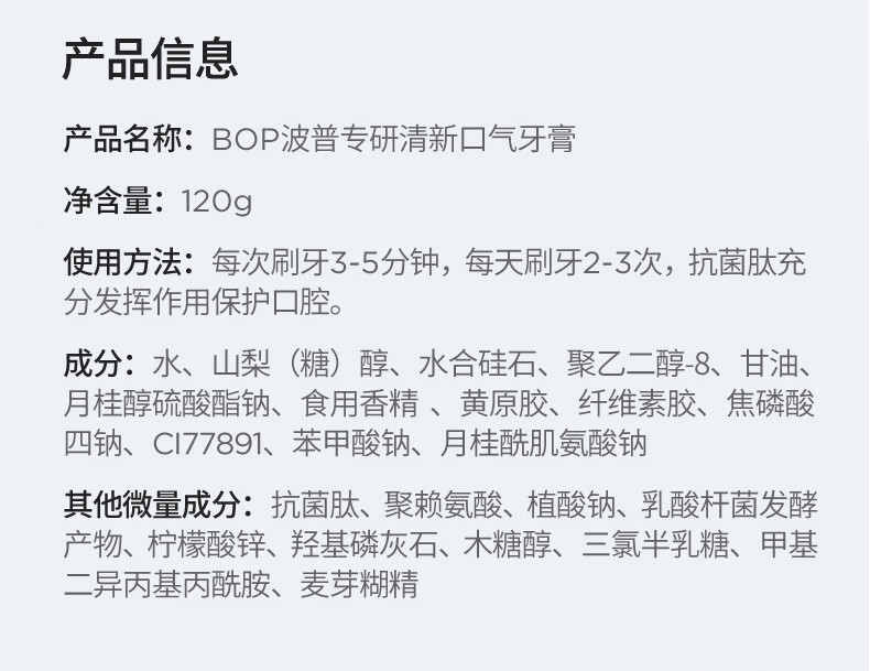 波普专研 清新口气牙膏120gFYG08070