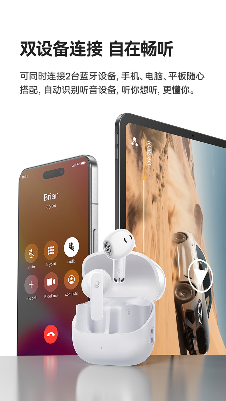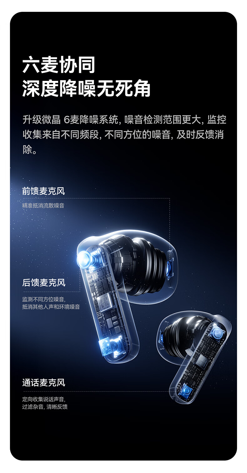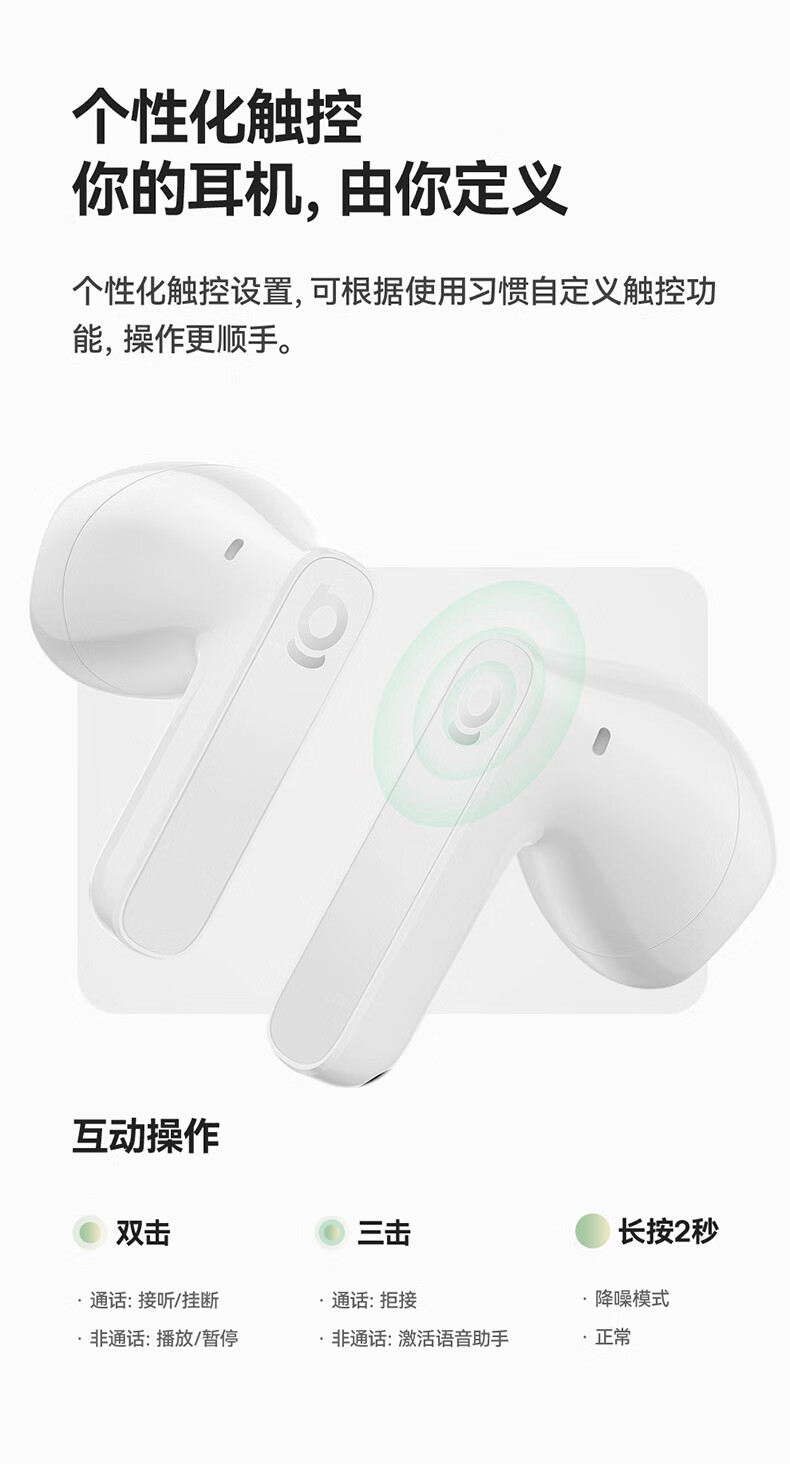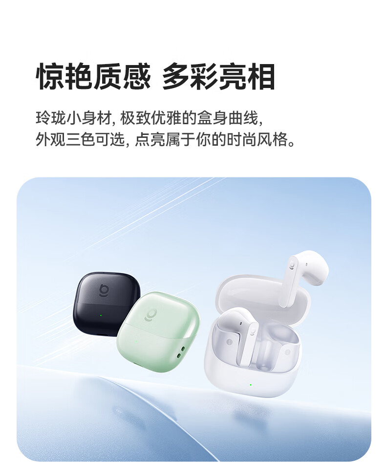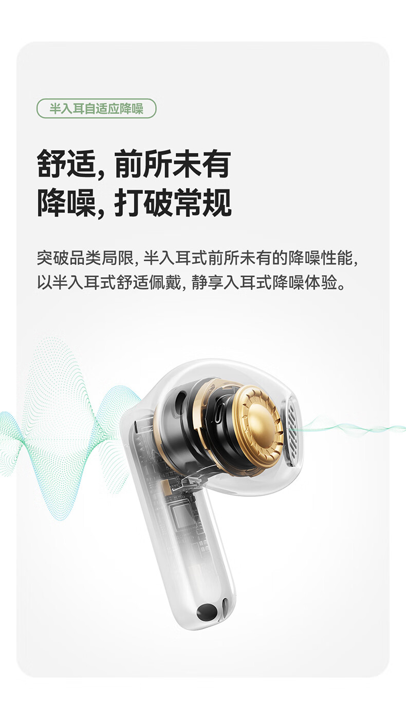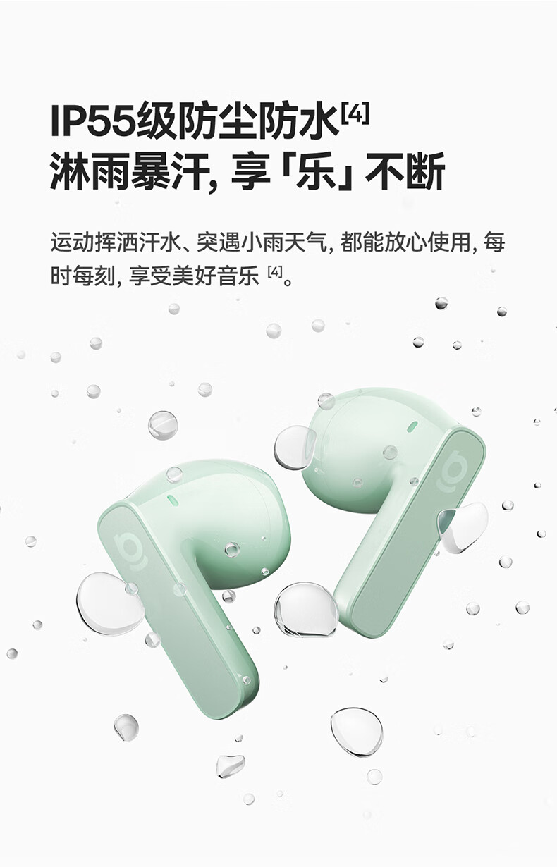 国家A+级降噪,静谧入耳,听见纯粹;接入AI随身助理,打造全天候陪伴的智慧体验;IP55级防尘防水,无惧雨汗
