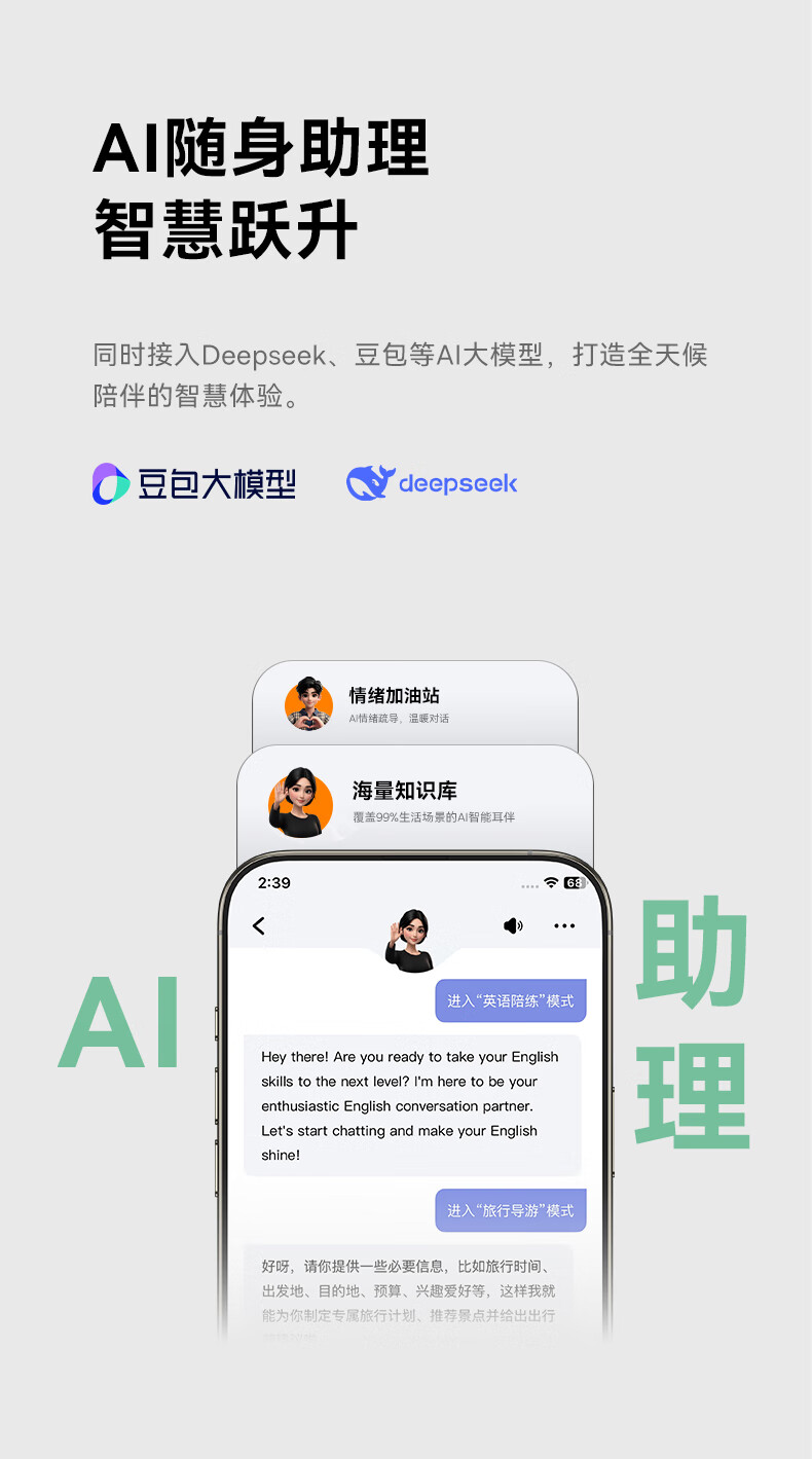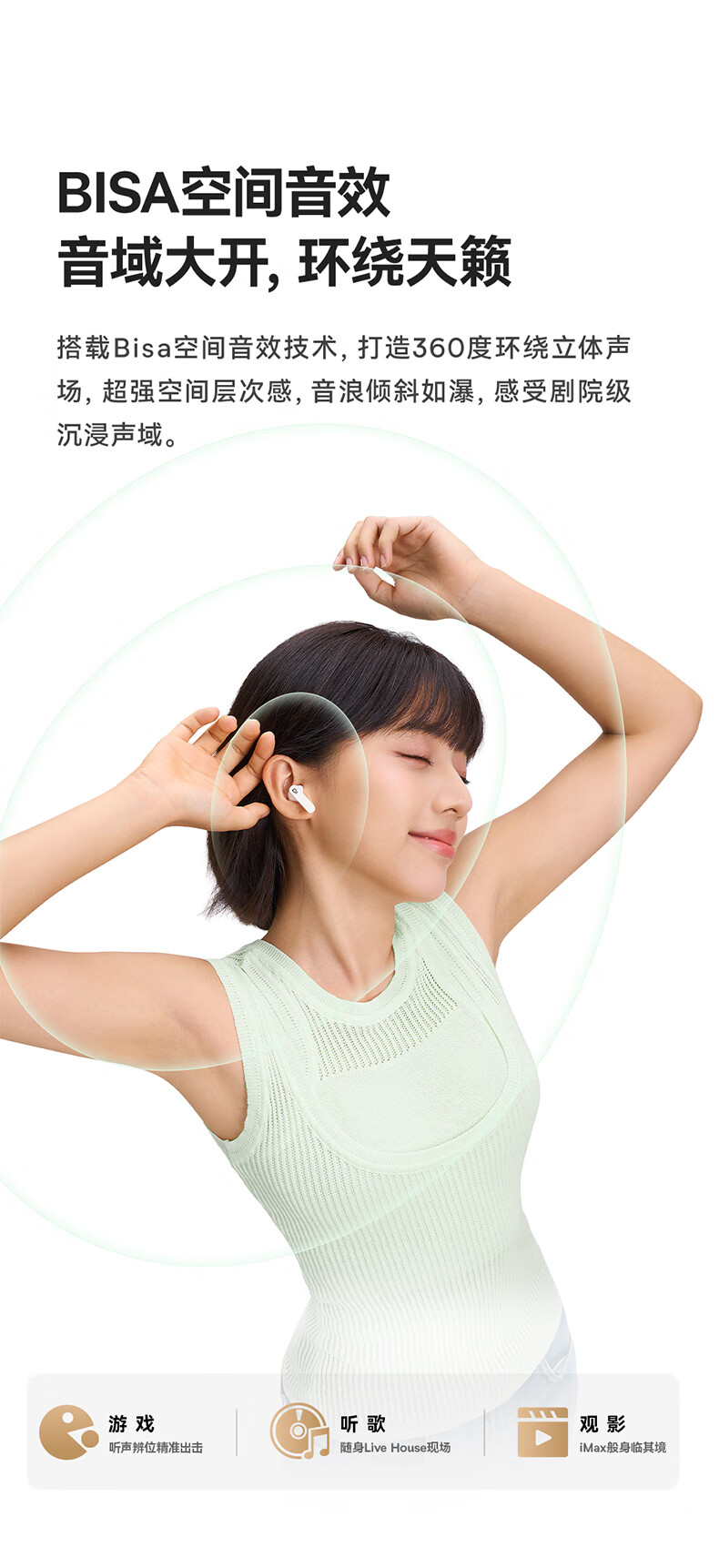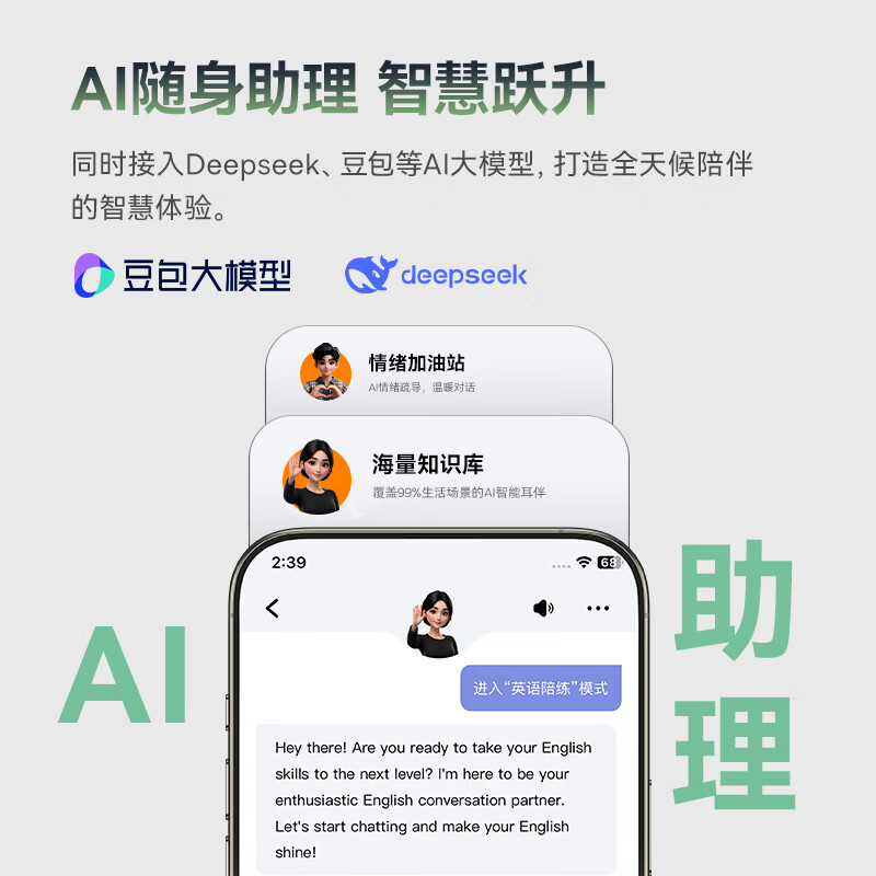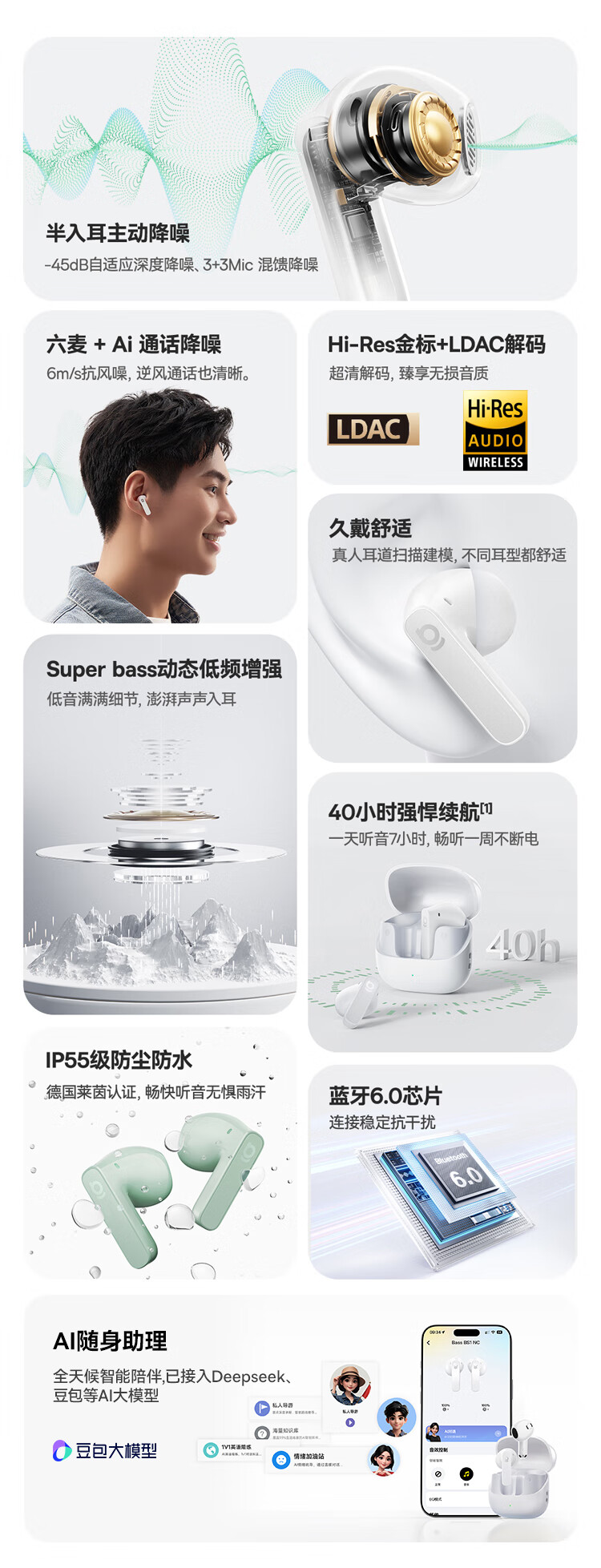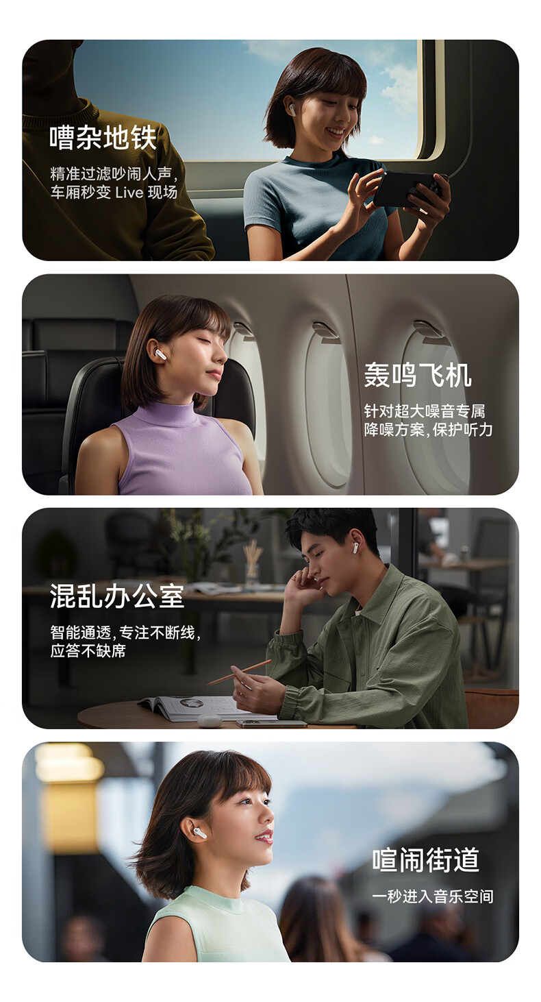 国家A+级降噪,静谧入耳,听见纯粹;接入AI随身助理,打造全天候陪伴的智慧体验;IP55级防尘防水,无惧雨汗