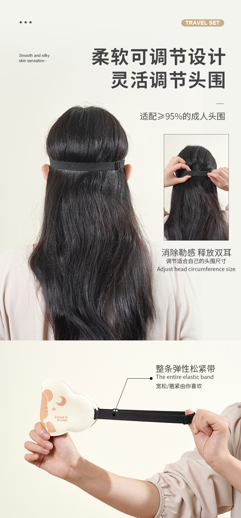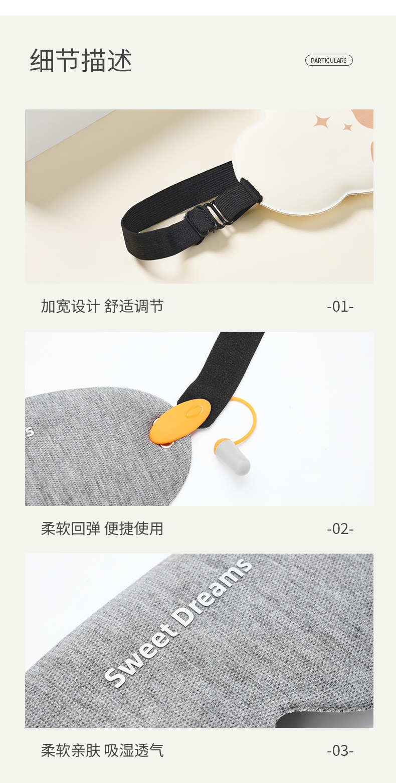 轻便便捷不透光 体验眼部SPA;舒适使用 不勒头 安心睡;大罩面 带上秒入夜