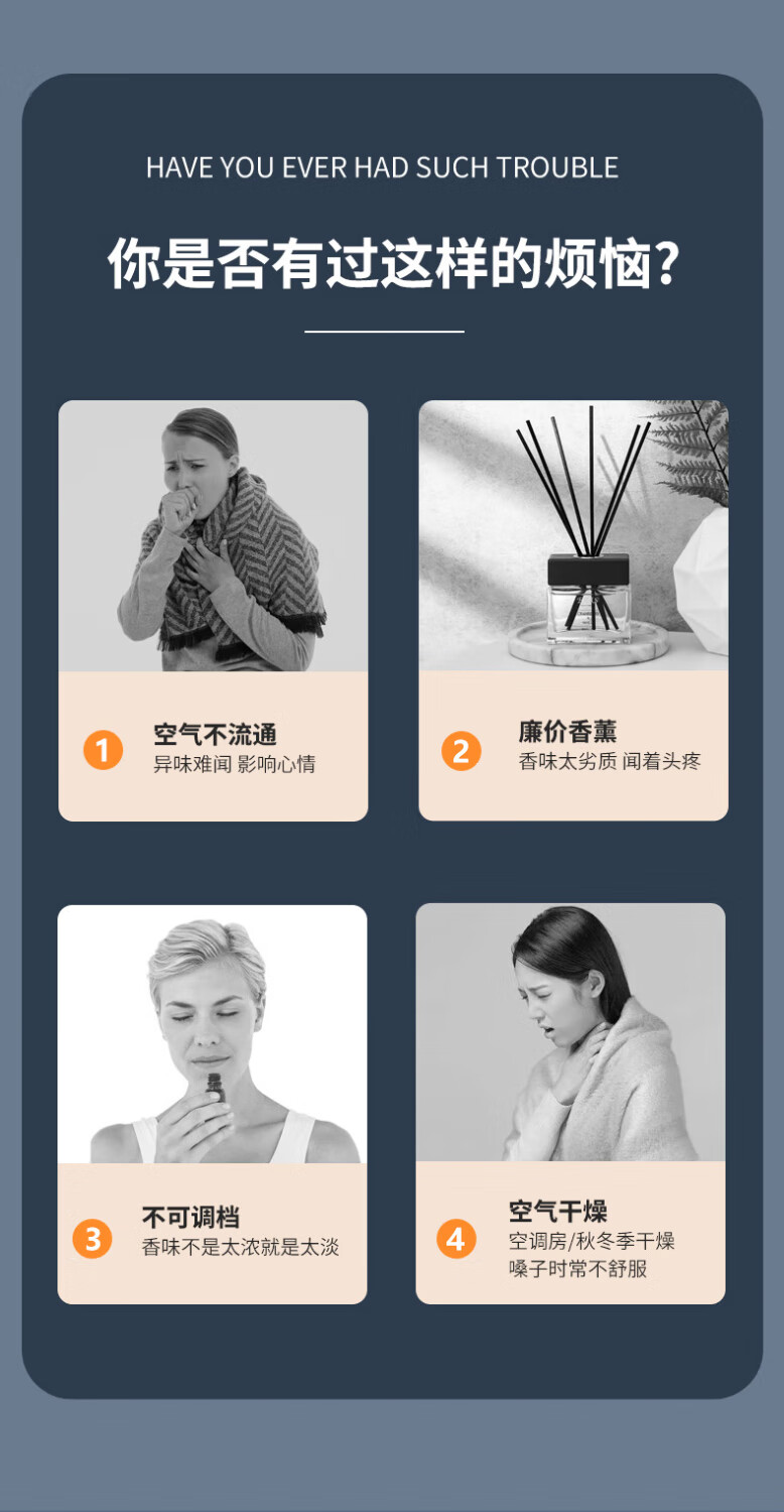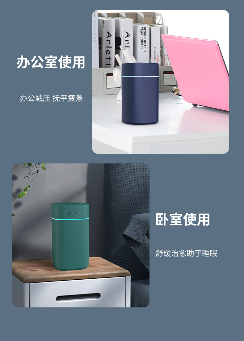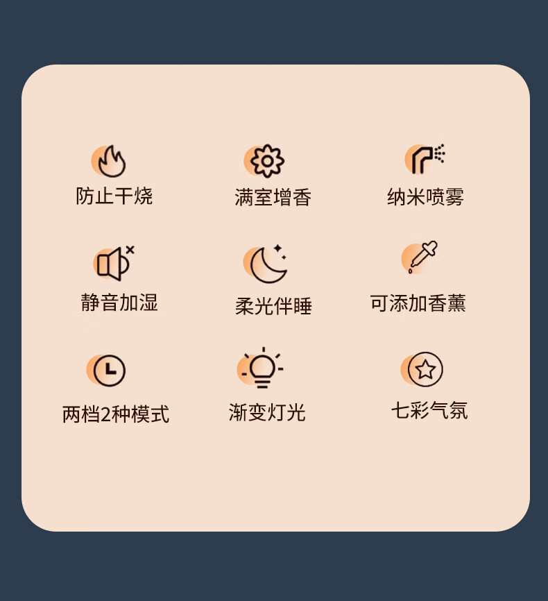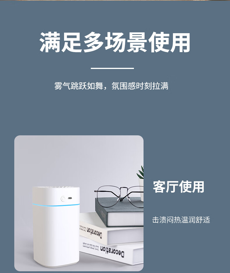 水箱分离设计;可加水溶性香薰;搭配七彩氛围灯
