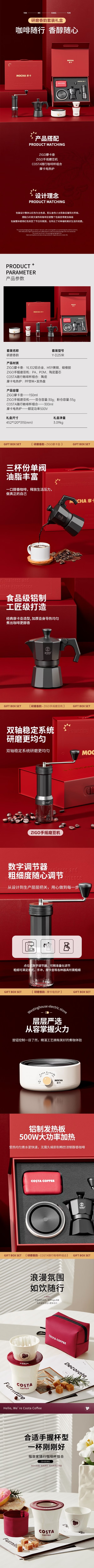 内配:ZIGO摩卡壶*1 ZIGO手摇磨豆机*1 Costa咖啡杯组合*1 摩卡电热炉*1