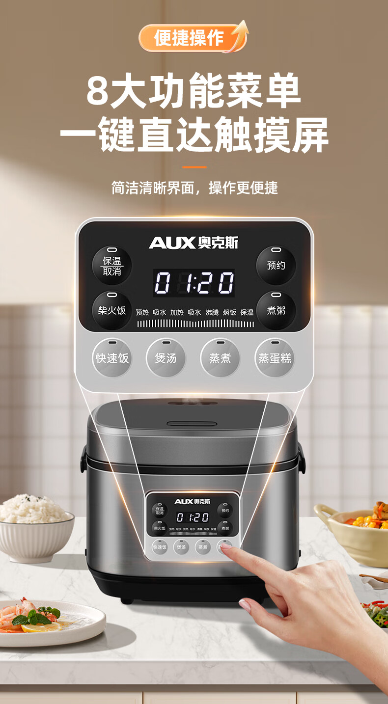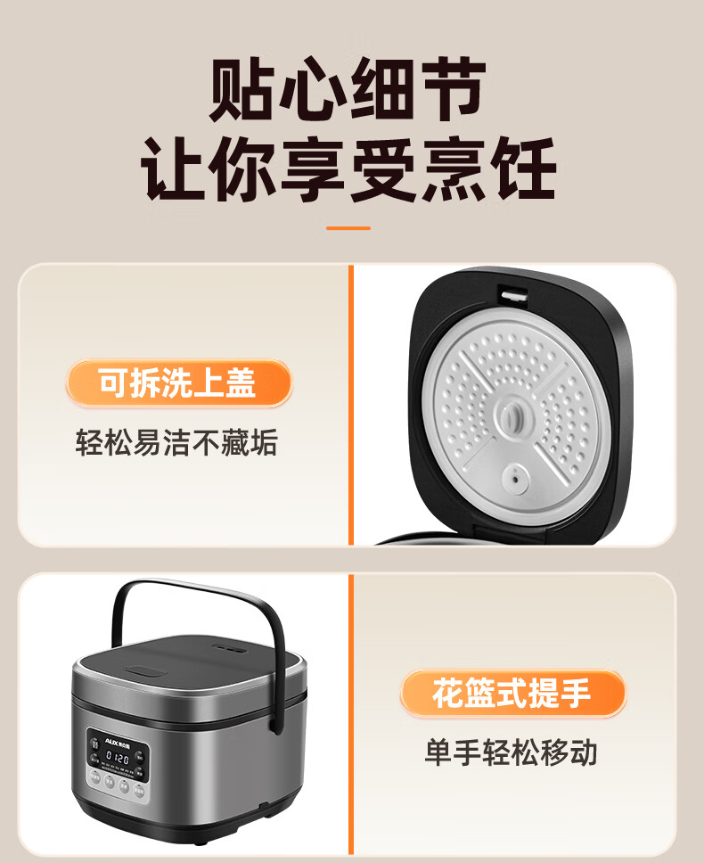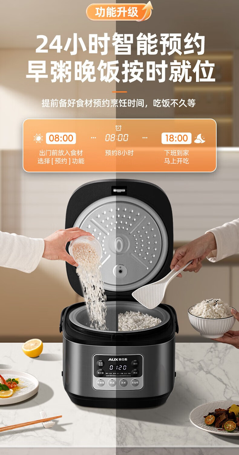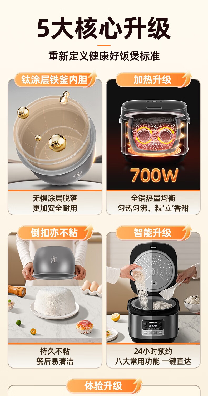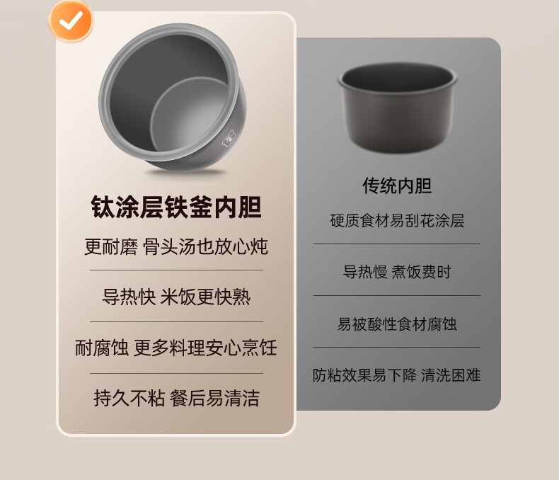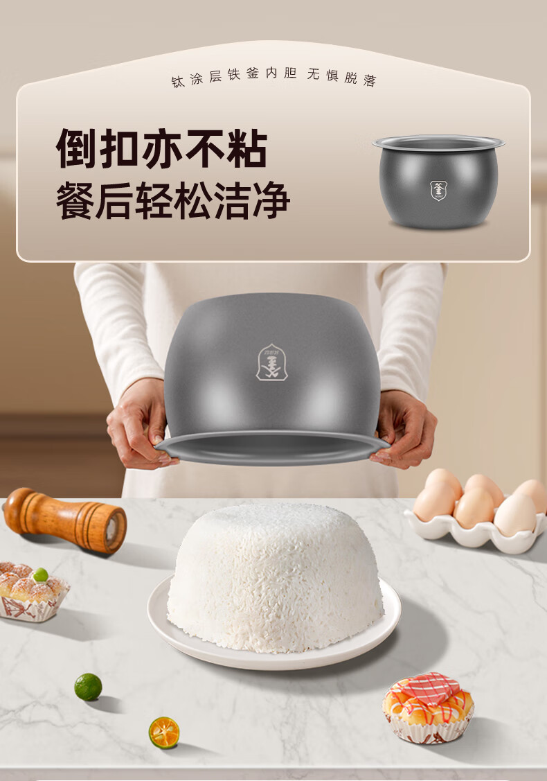 钛涂层铁釜内胆;可拆洗上盖;24小时预约功能