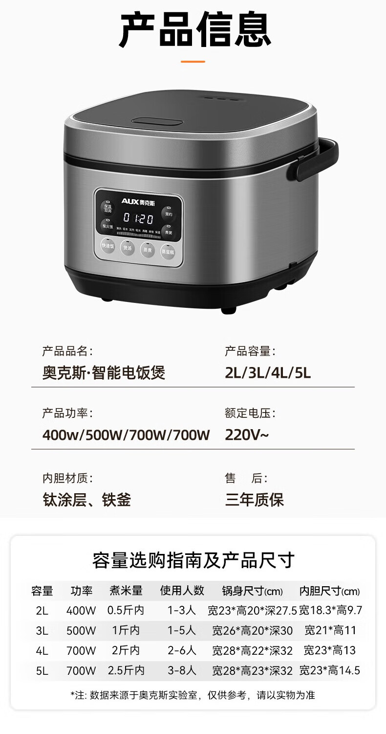 奥克斯 智能煲钛涂层内胆5LVK-BZ5012D
