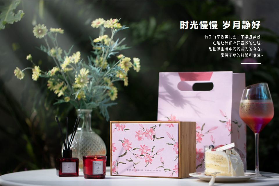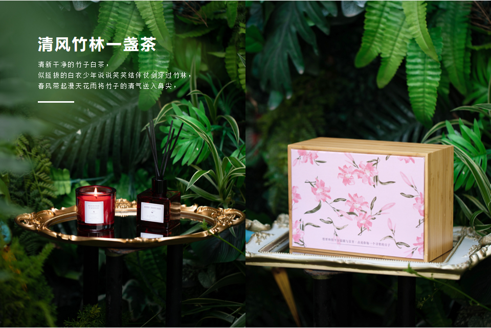 竹制礼盒,去繁就简;气味不浓烈,但是可以长久陪伴;竹子白茶香薰礼盒,干净且美好