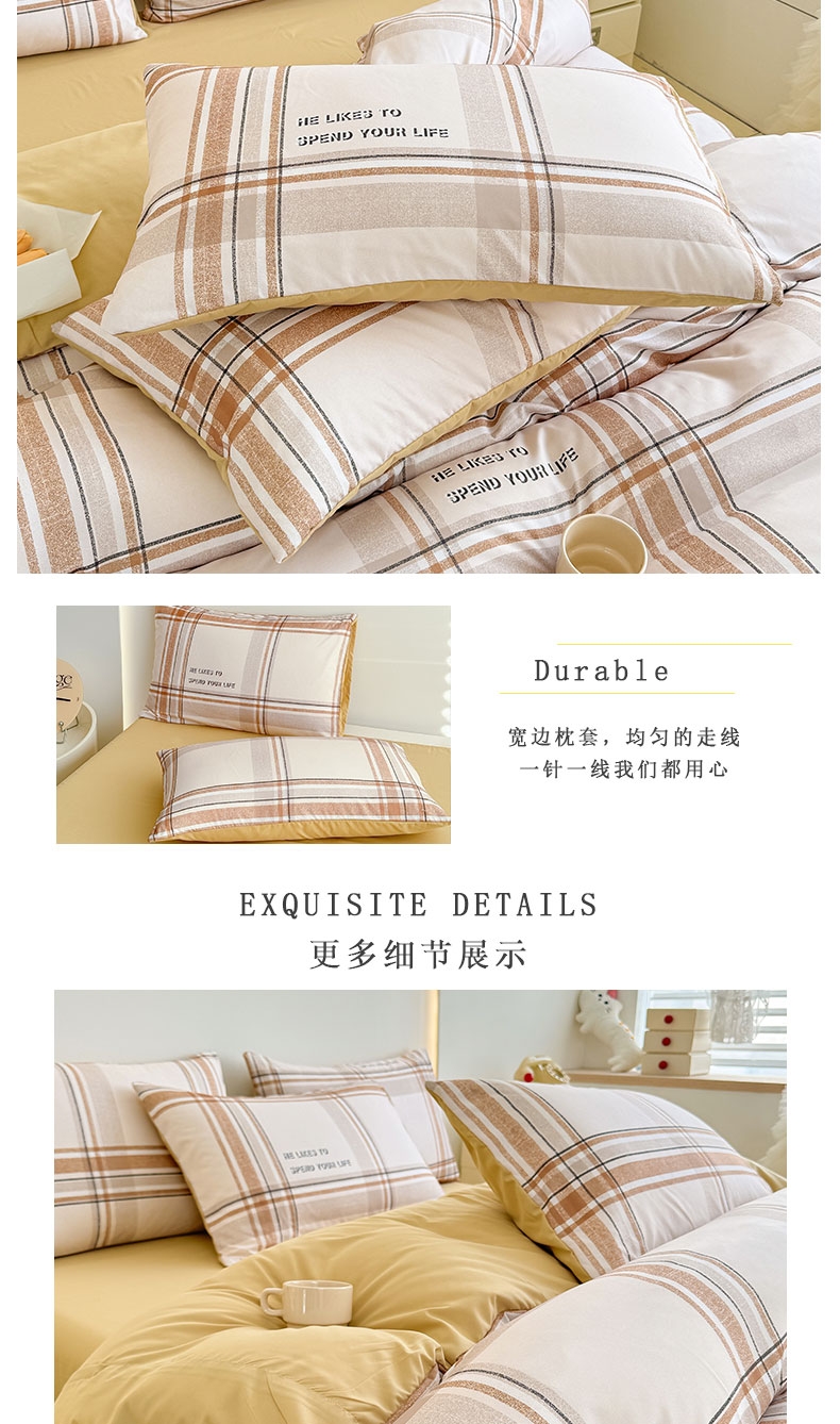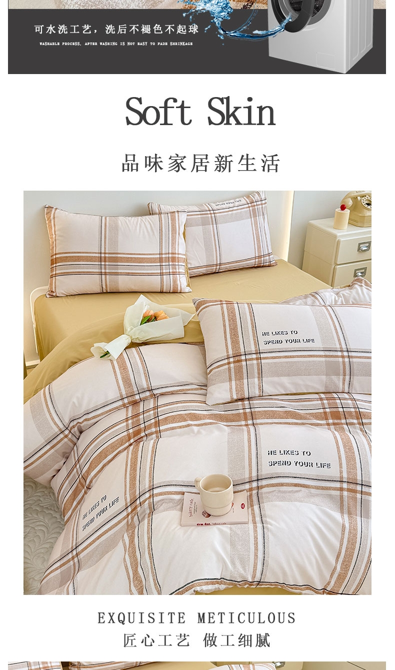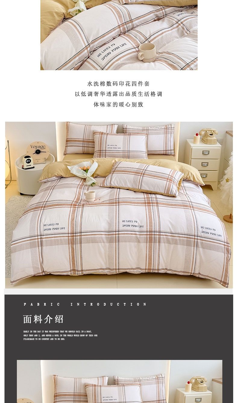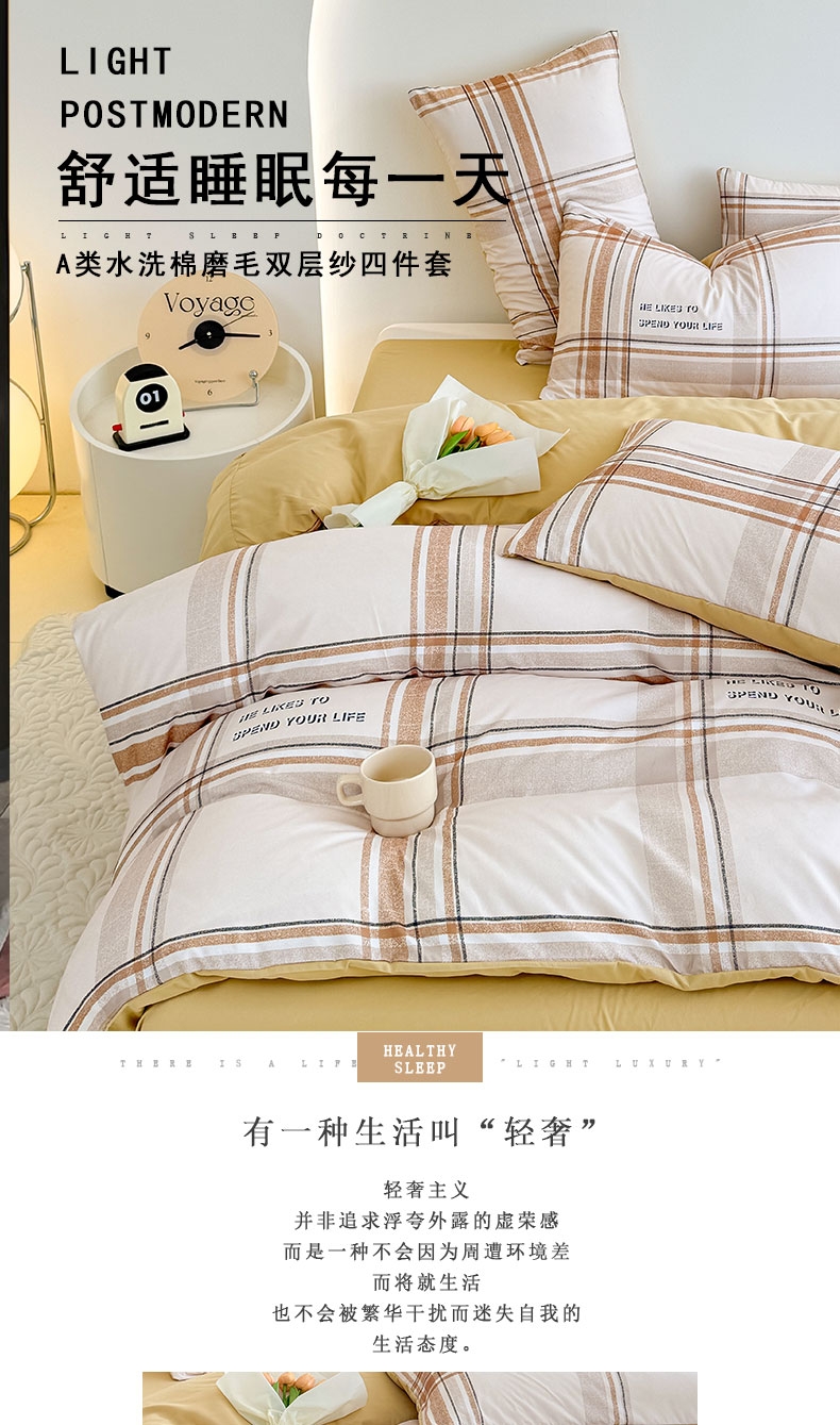 舒适睡眠每一天 A类水洗棉磨毛双层纱四件套;水洗棉磨毛,柔软、舒适、透气面料不起球不褪色、;隐藏式金属拉链 ,直角印花床单