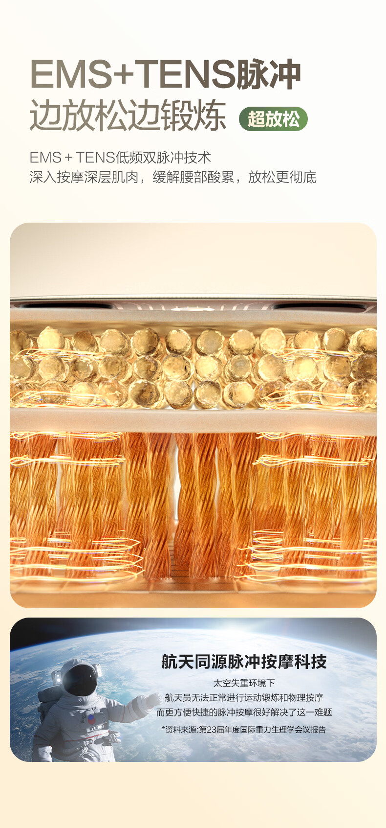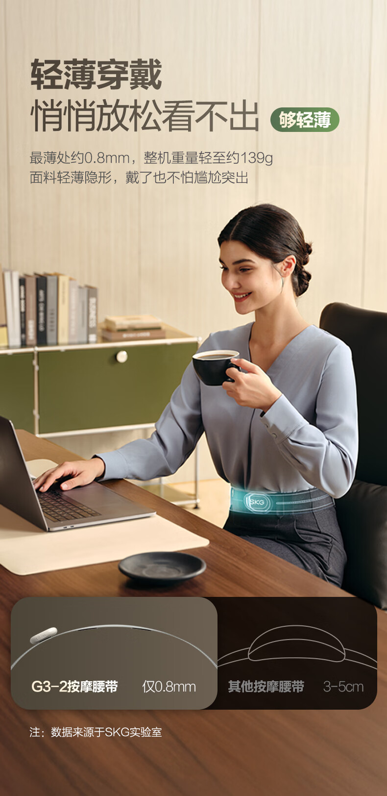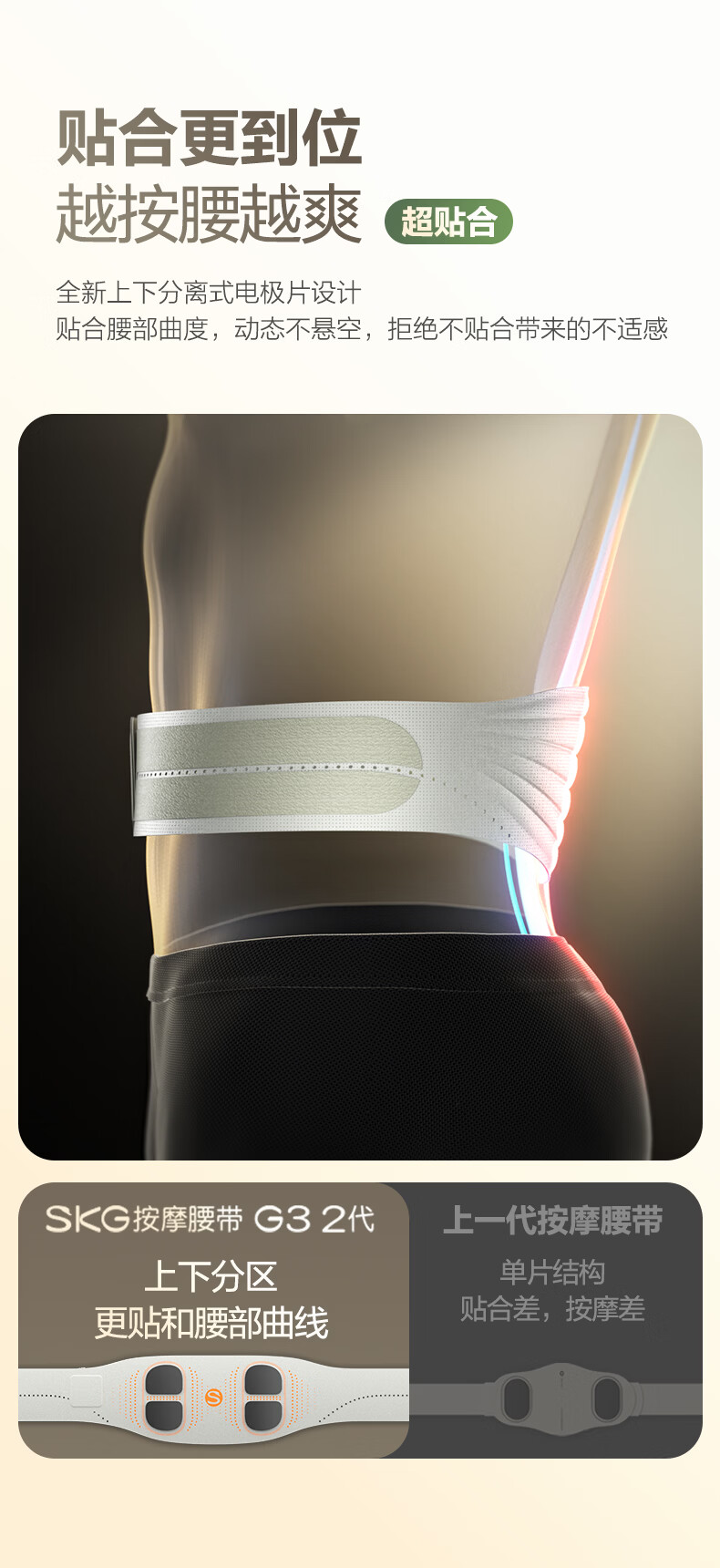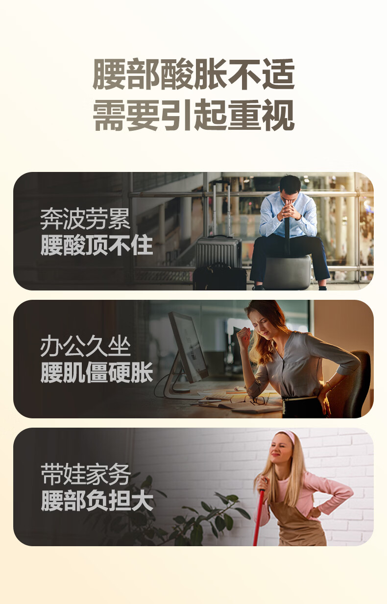 轻薄隐形穿戴,放松内戴不突出;分区柔性电极,贴合腰部曲线;14种按摩手法,揉拍捶都舒适