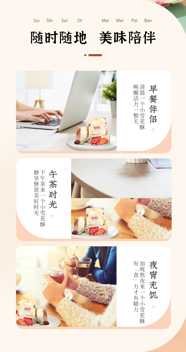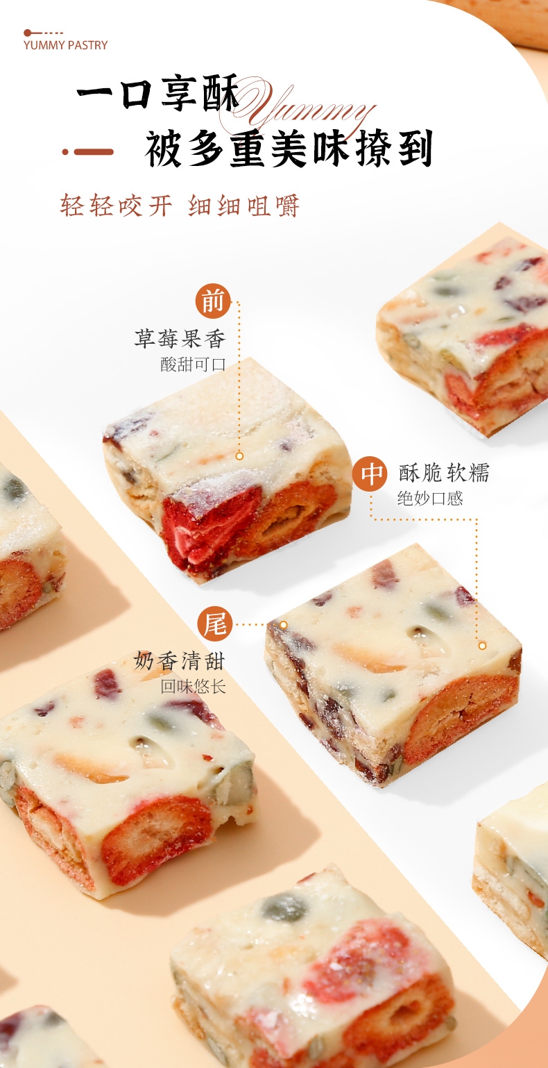 独立小包装;酥/软/香/脆;手工雪花酥,颜值高