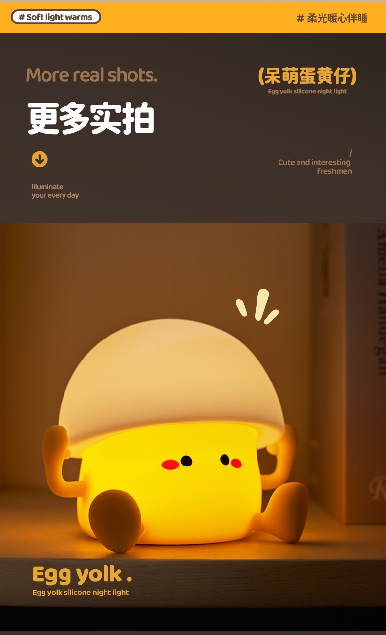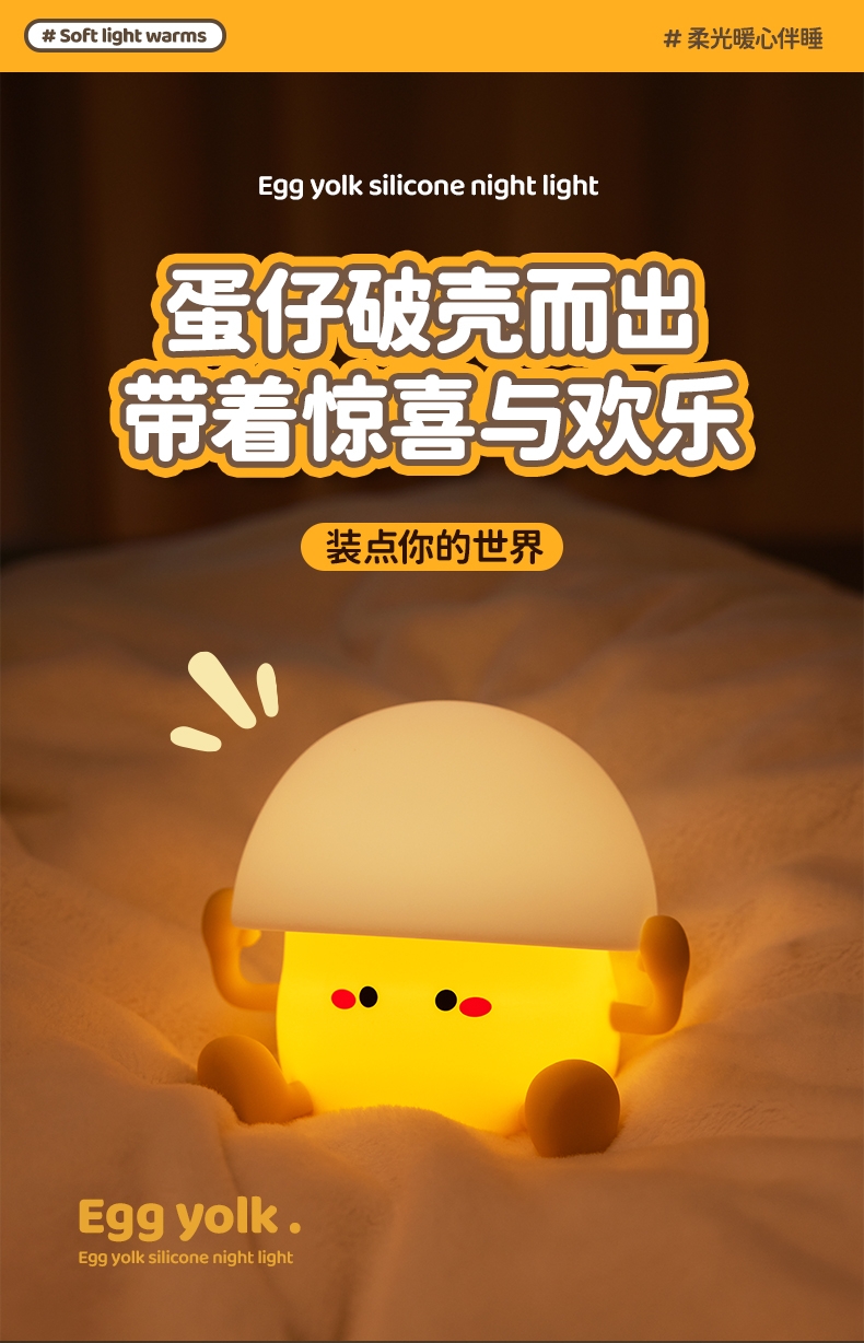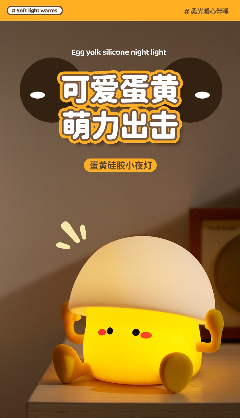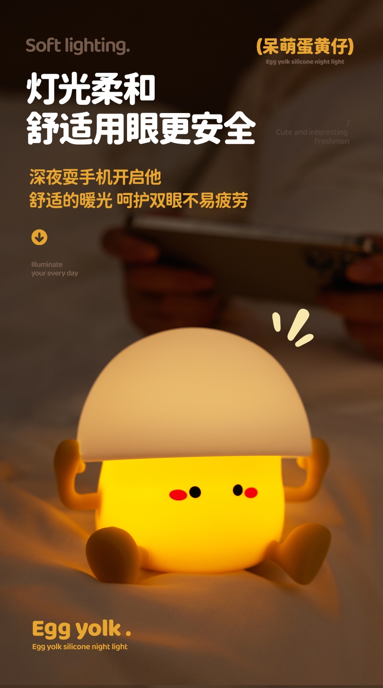 蛋黄萌趣 IP,柔光氛围感强;母婴级柔光护眼,无频闪、无蓝光;卧室伴睡、儿童房夜灯、办公桌面补光、露营氛围灯都可