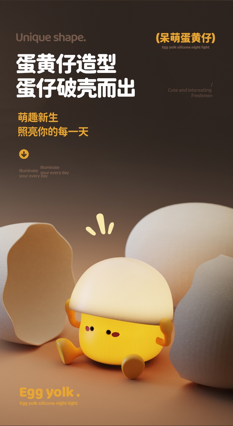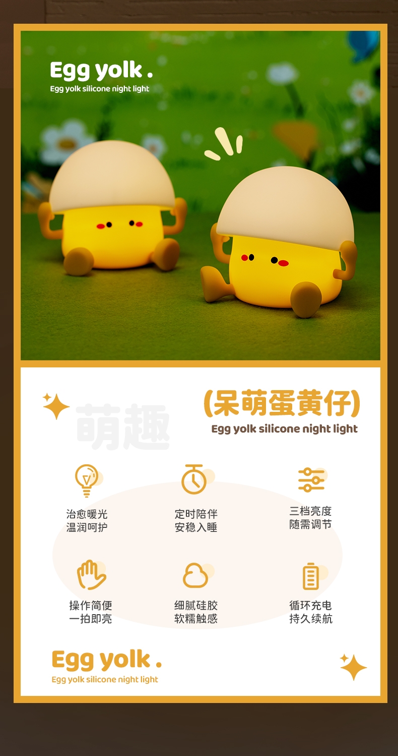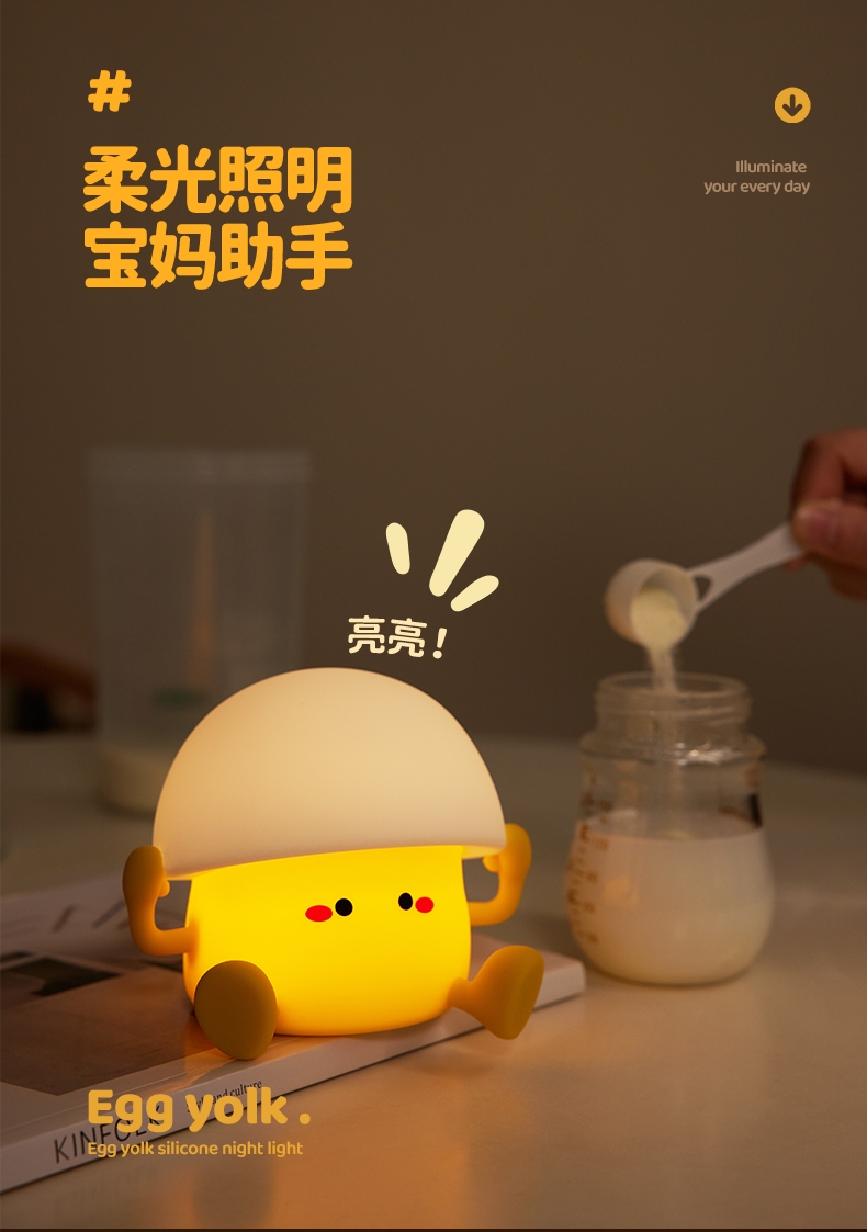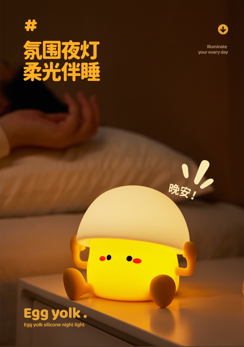 蛋黄萌趣 IP,柔光氛围感强;母婴级柔光护眼,无频闪、无蓝光;卧室伴睡、儿童房夜灯、办公桌面补光、露营氛围灯都可