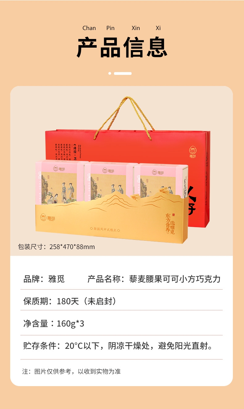 雅觅 藜麦腰果可可小方巧克力160g