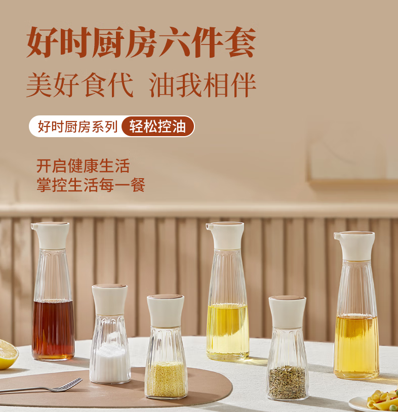 六件套配置:油壶420ml*3、调味罐180ml*3