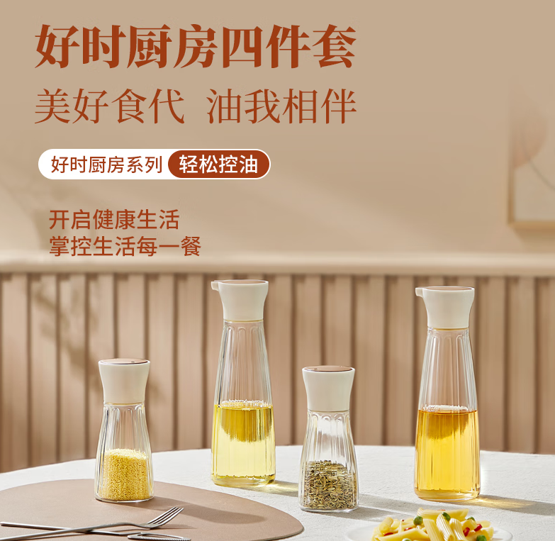 四件套配置:油壶420ml*2、调味罐180ml*2