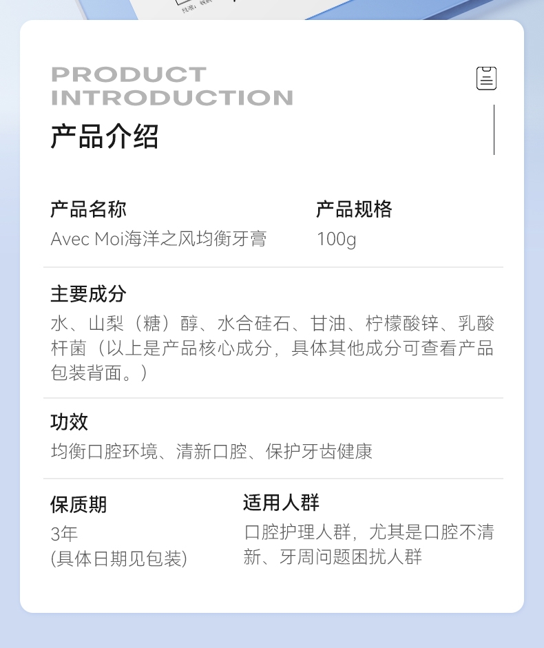 Avec Moi 海洋之风益生菌均衡牙膏100gYGXJH1001