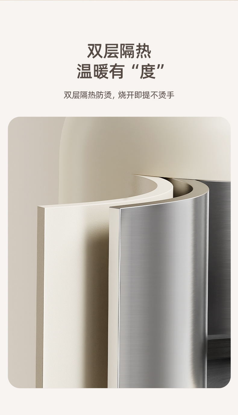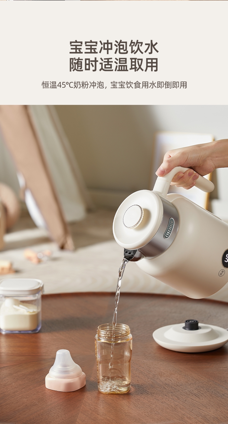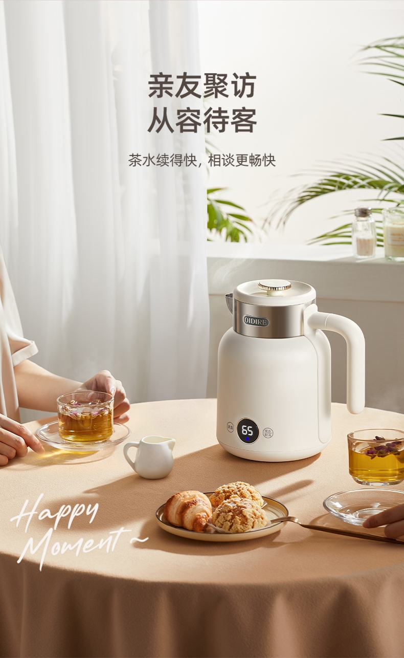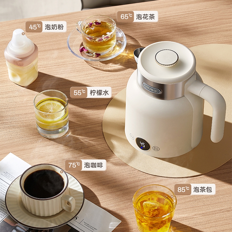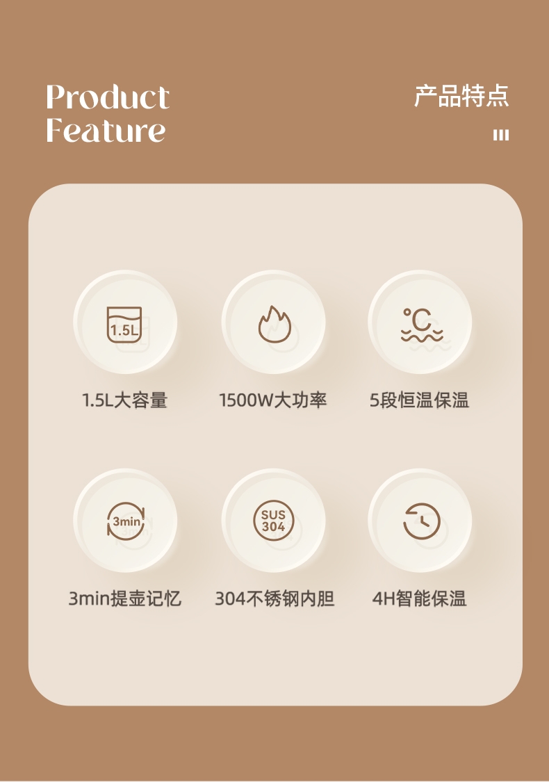 数码显示屏,温度随时可视 ;304不锈钢内胆,健康无异味;智能五段恒温,满足各种需求;双层隔热防烫,三色工作指示灯;提壶记忆功能,干烧断电保护