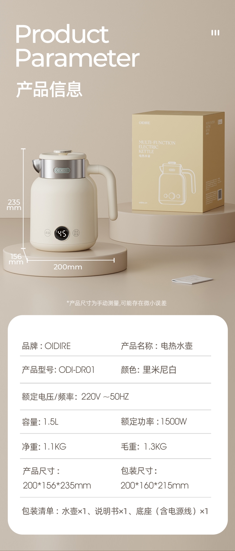 配置清单:水壶*1 壶盖*1 底座*1 说明书*1