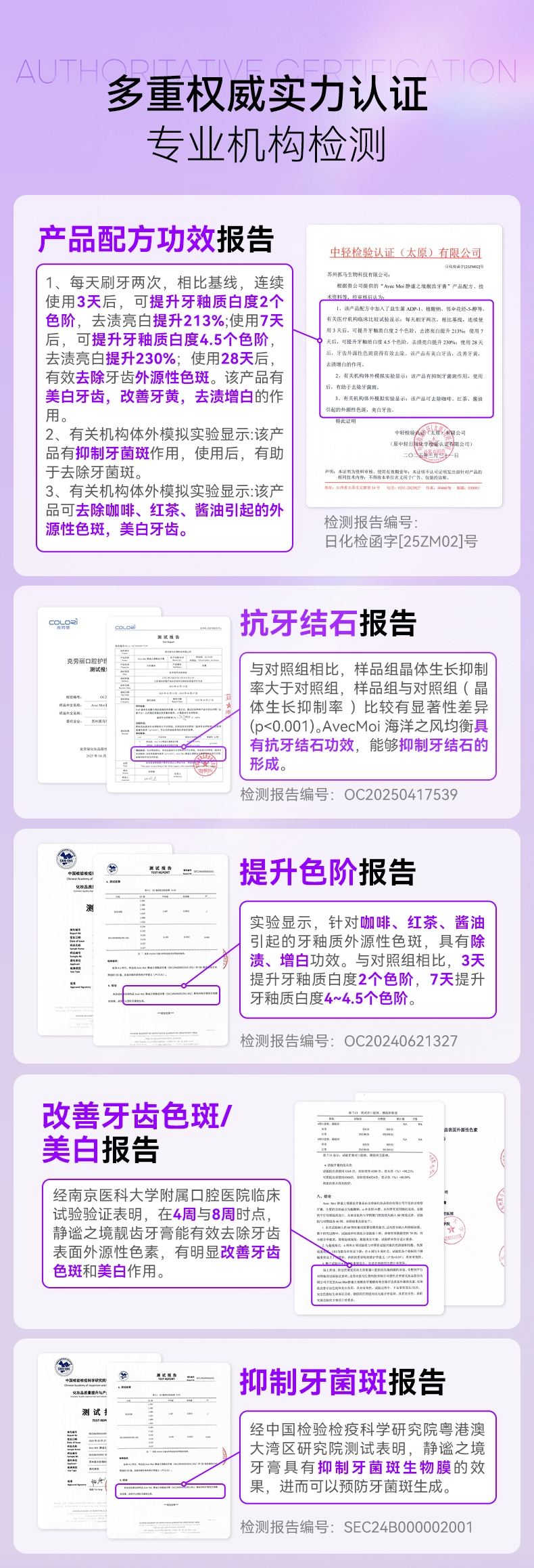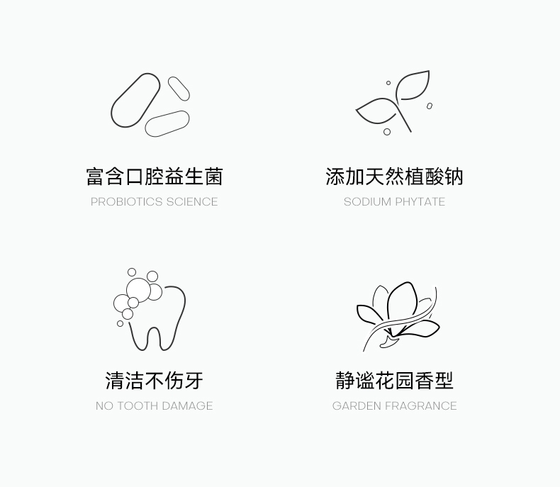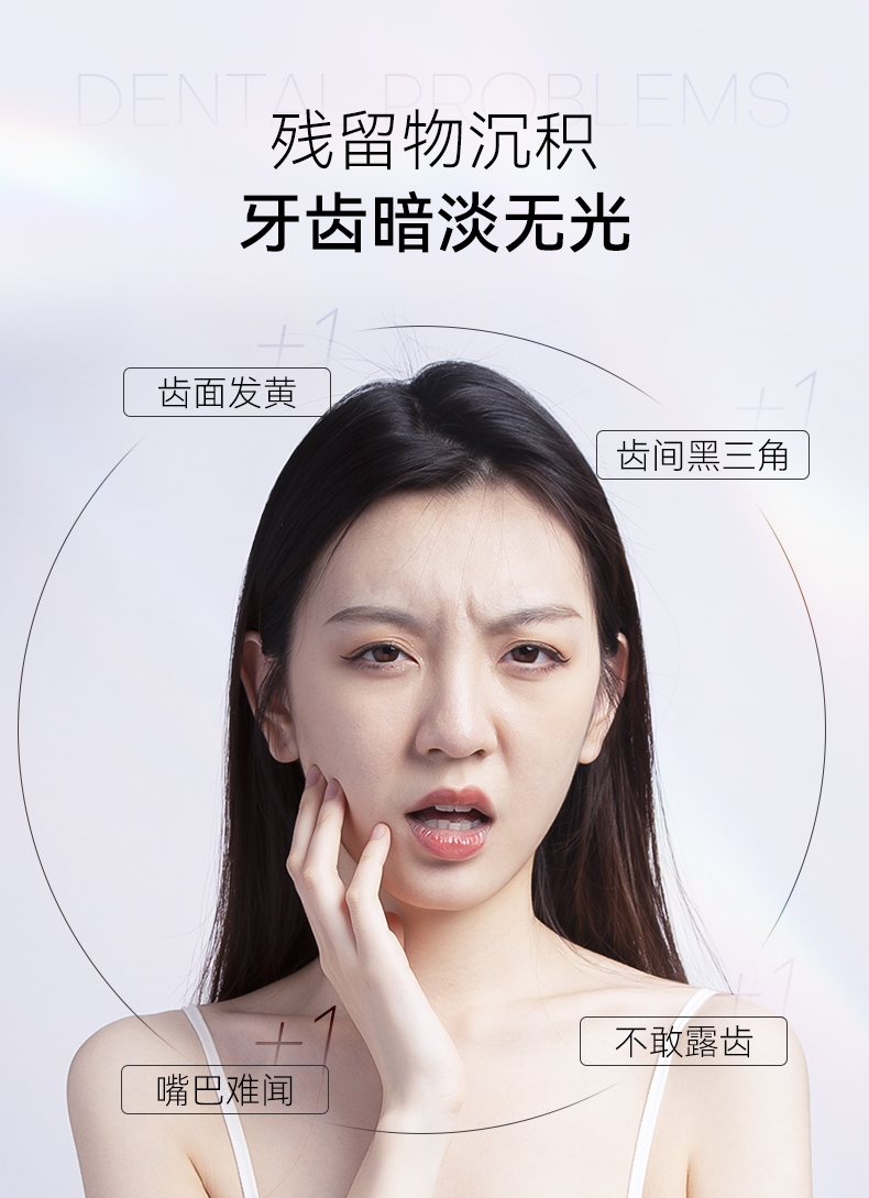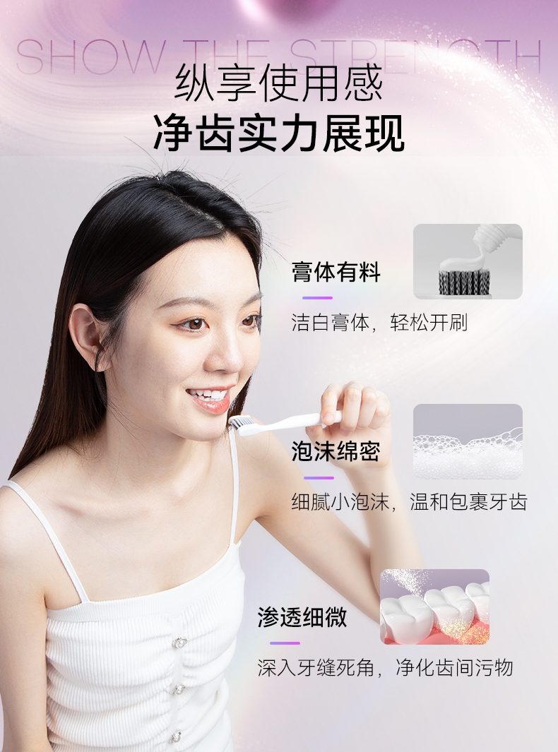 深入牙缝死角,净化齿间污物;帮助清新口气,呵护牙周健康;细腻小泡沫,温和包裹牙齿