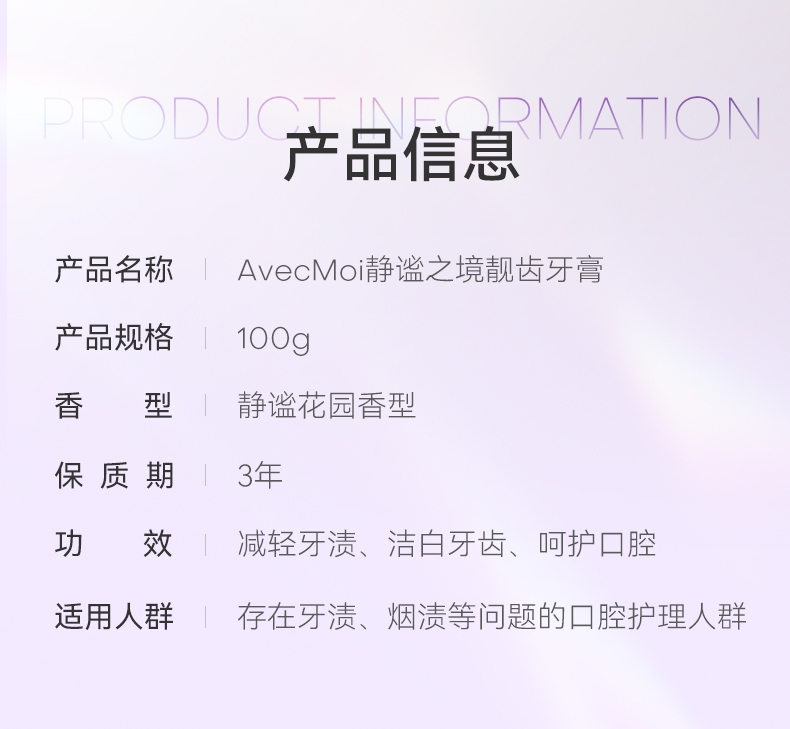 Avec Moi 静谧之境益生菌靓齿牙膏100g8010100800