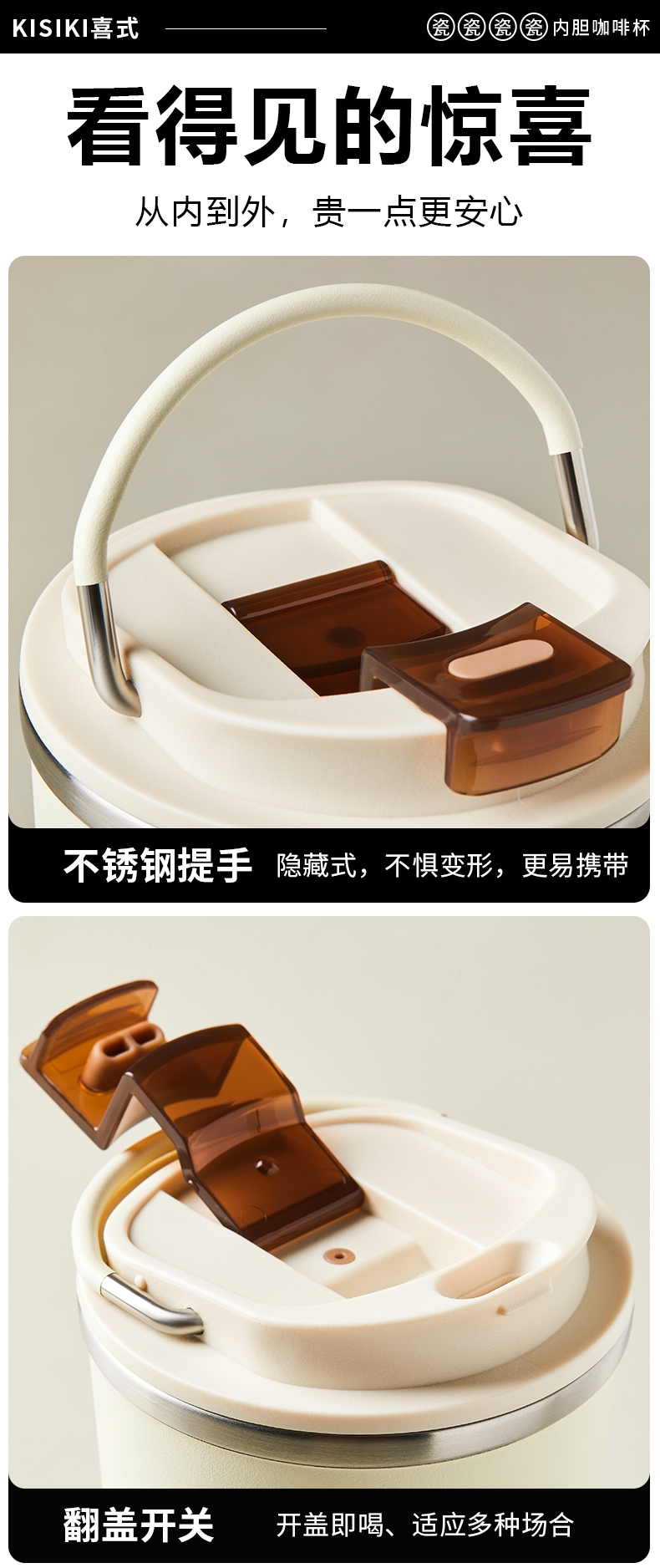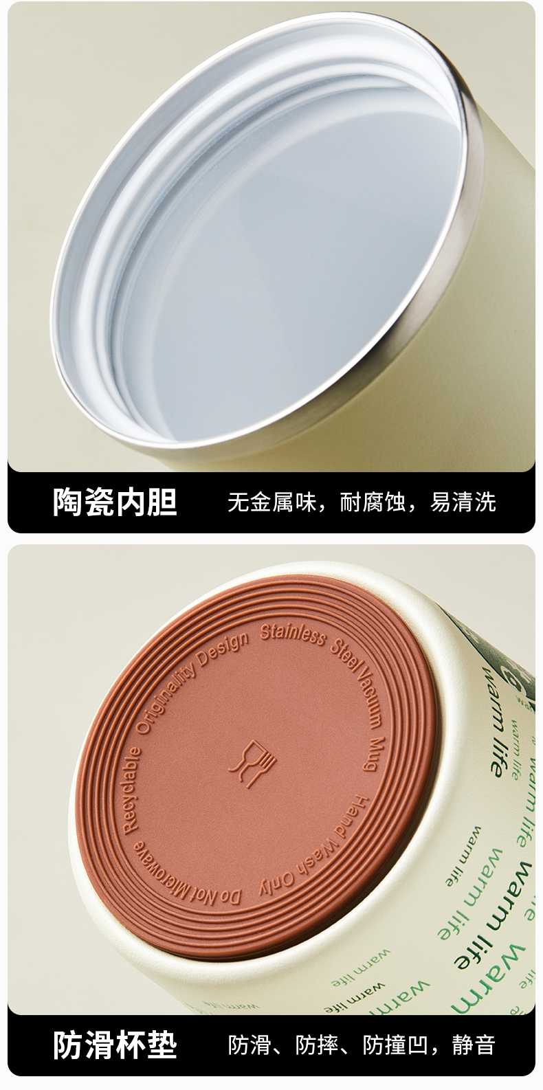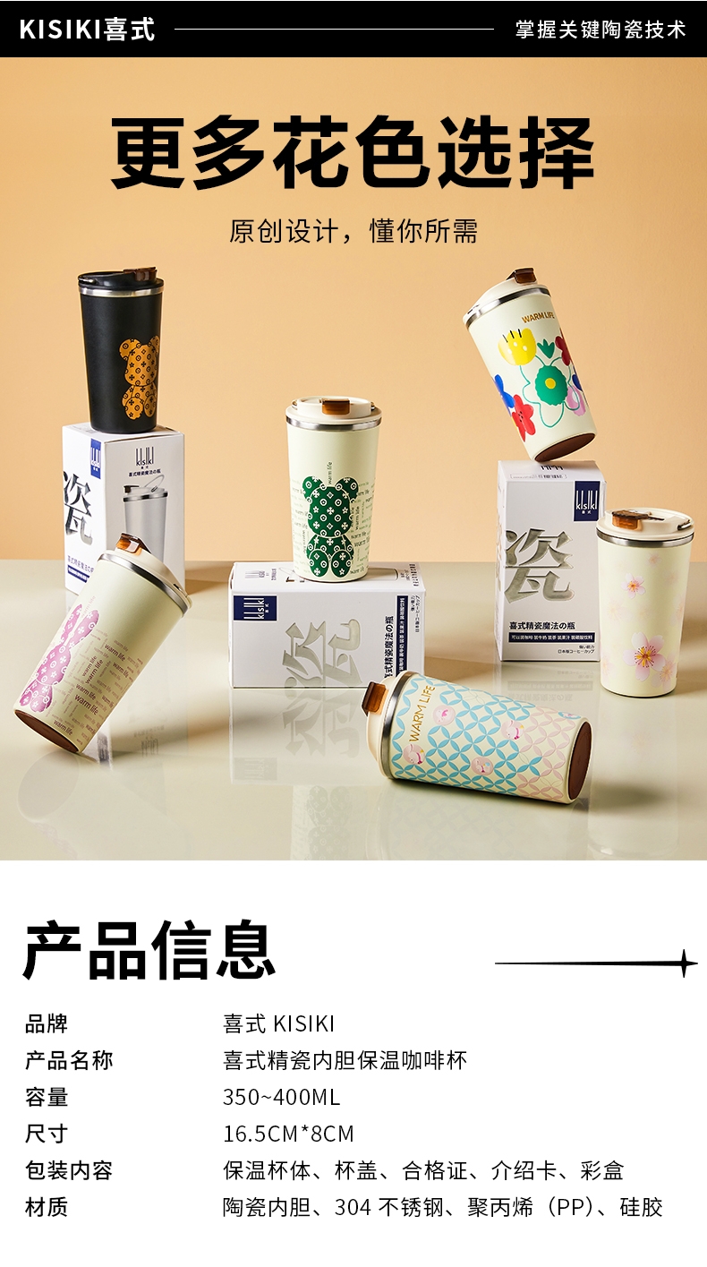 黑科技陶瓷内胆:无金属异味 保温 锁鲜 耐酸碱;百搭魔法杯:咖啡、红茶、果汁、牛奶、中药都可泡;使用新型3D喷墨印刷技术,展现凹凸立体质感