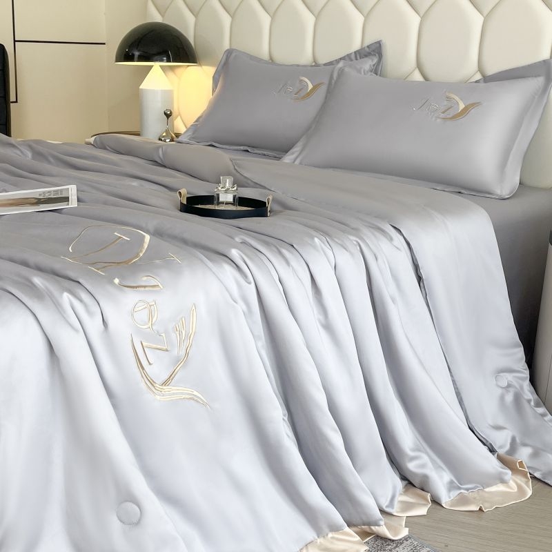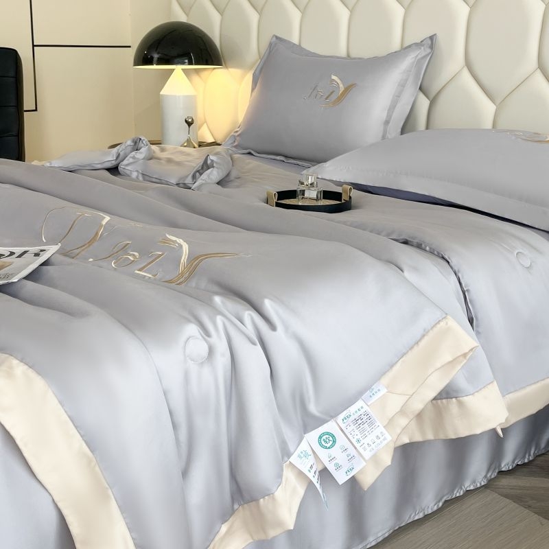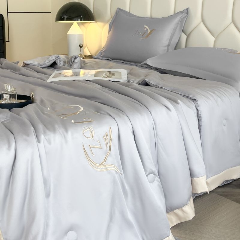 花花公子 水洗真丝纯色宽边刺绣夏被空调被PLAYBOY-215