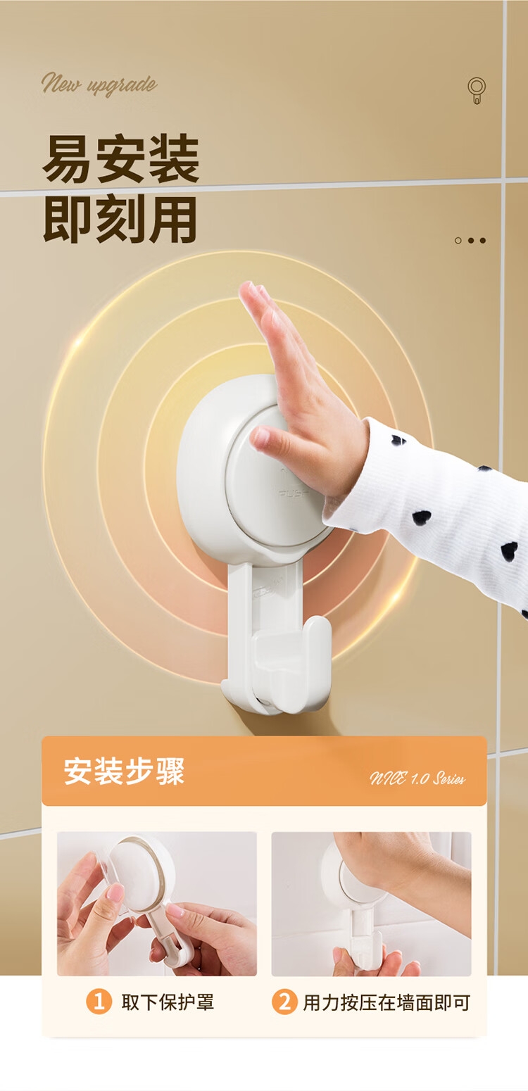 免粘胶,按压固定;循环用,可移动;适用于多种墙面